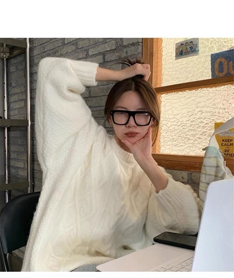 ダウンジャケット女2023新作ウエストシェイプの気品軽くてオシャレで小柄なダウンジャケットコートツイードセーター女秋冬柔らかいコーディネート自在クリームホワイト丸首ゆったりプルオーバーガードルニット番号ZT531