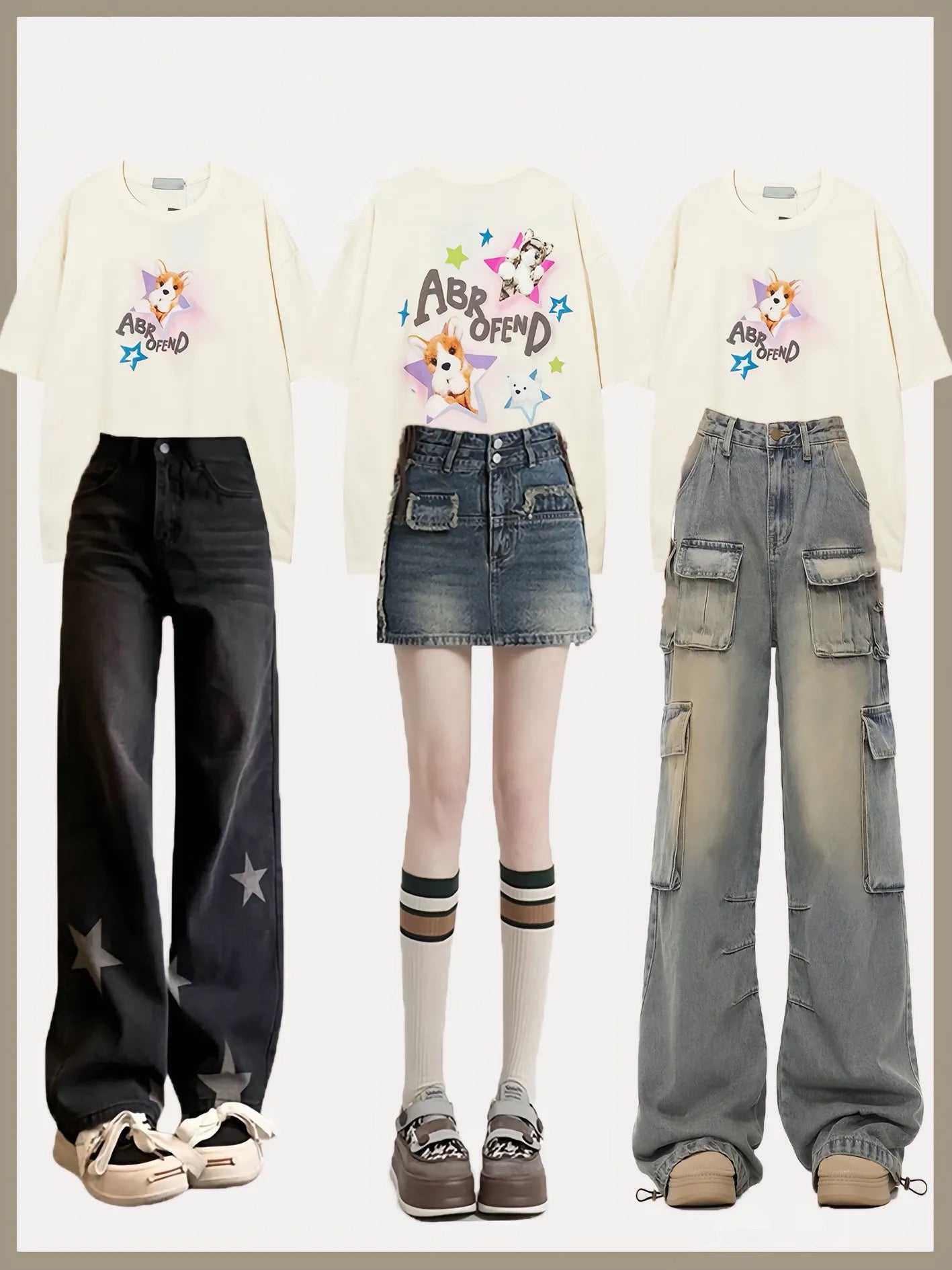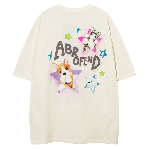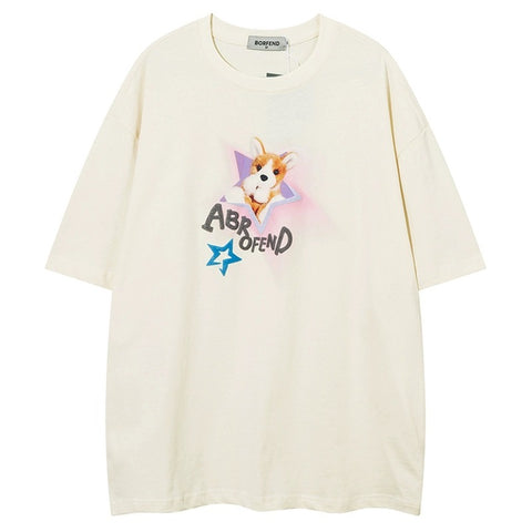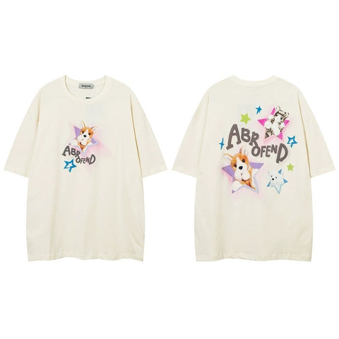 ドーパミン可愛い星子犬プリント半袖Tシャツ女性ファッションブランド甘クール風ギャルゆったり半袖夏番号ZT217
