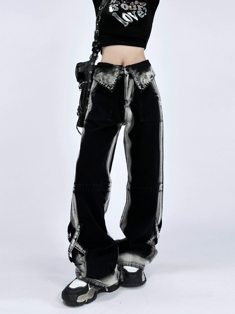 ハイウエストストレートルーズジーンズ女夏薄タイプ2023新作ワイドレッグスリムパンツ番号ZT344