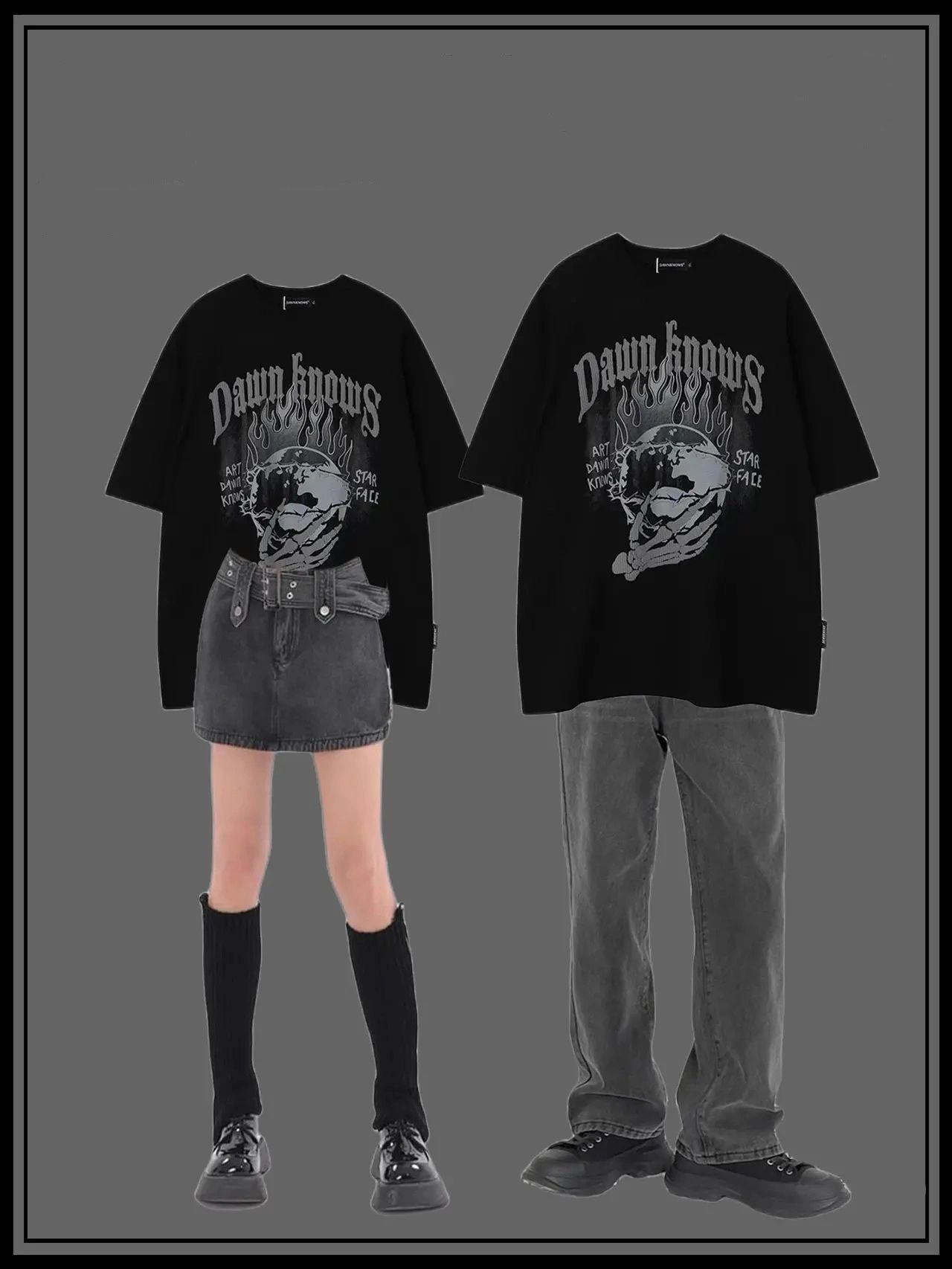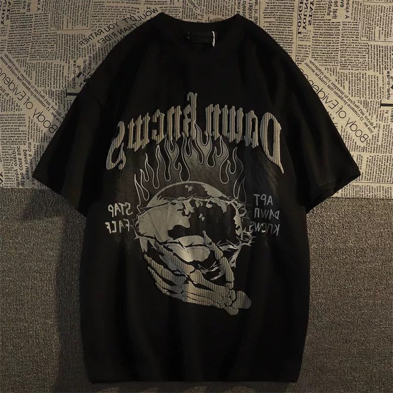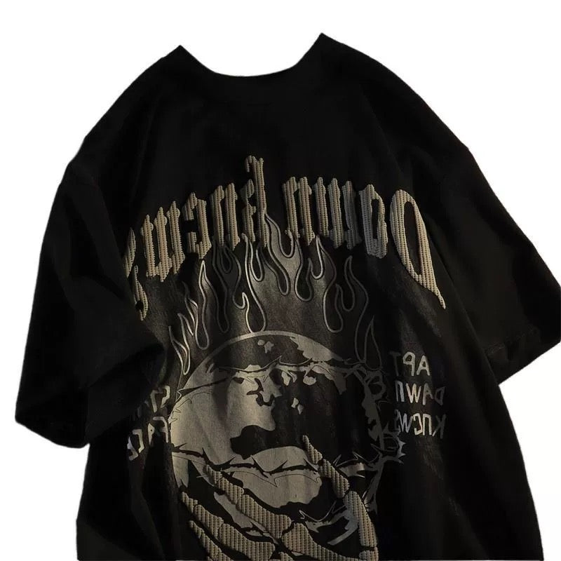 ハイストリートカップル炎純綿半袖Tシャツinsゆったりストリート風アメリカ風上着番号ZT461