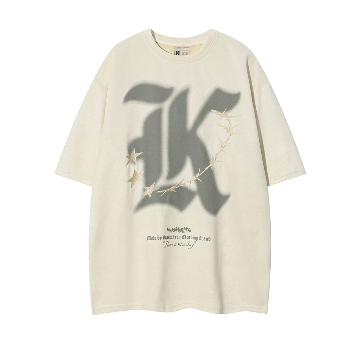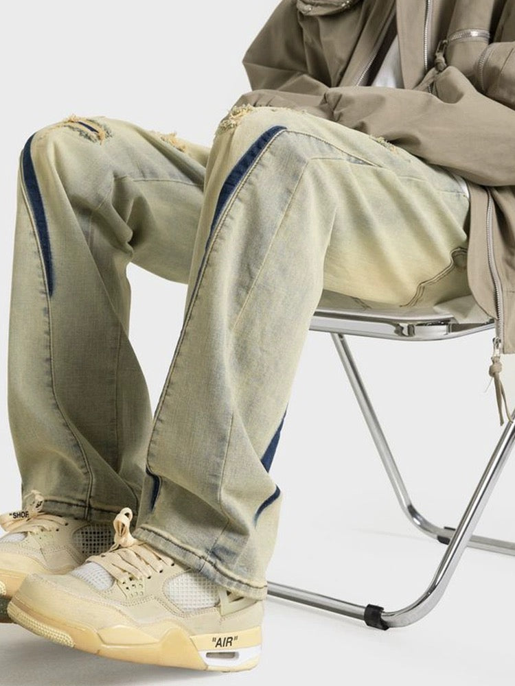 ハイストリート復古刺繍スエード半袖Tシャツメンズ夏のヘビーローテーションアメリカン半袖ins アメリカ式イエローパンツジーンズメンズ夏薄型ストレートパンツハイストリートoversize番号ZT220