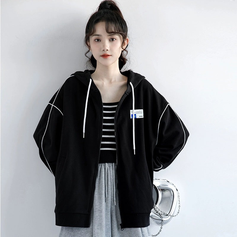 パーカinsゆったりブラックパーカーコート女性春秋カジュアルファスナーカーディガン番号ZT445