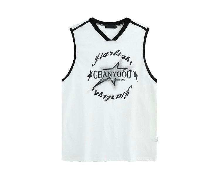 ヒップホップグラフィティプリントスポーツベスト男女ゆったりカップルカジュアルノースリーブTシャツ番号ZT198
