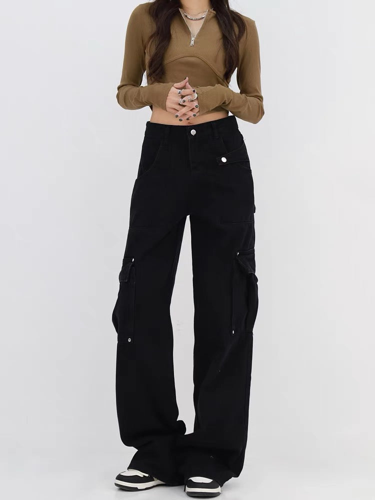 ヒップホップダブルジップフード付きパーカコート男女トレンドブランドゆったり防風機能ジャケットアメリカ風正肩蝶プリント半袖Tシャツ女性夏ギャル無欲風オープンウエスト半袖上着 アメリカ式2023春秋新作ストリートデザイン感覚ポケットカーゴストレートワイドパンツ番号 ZT591