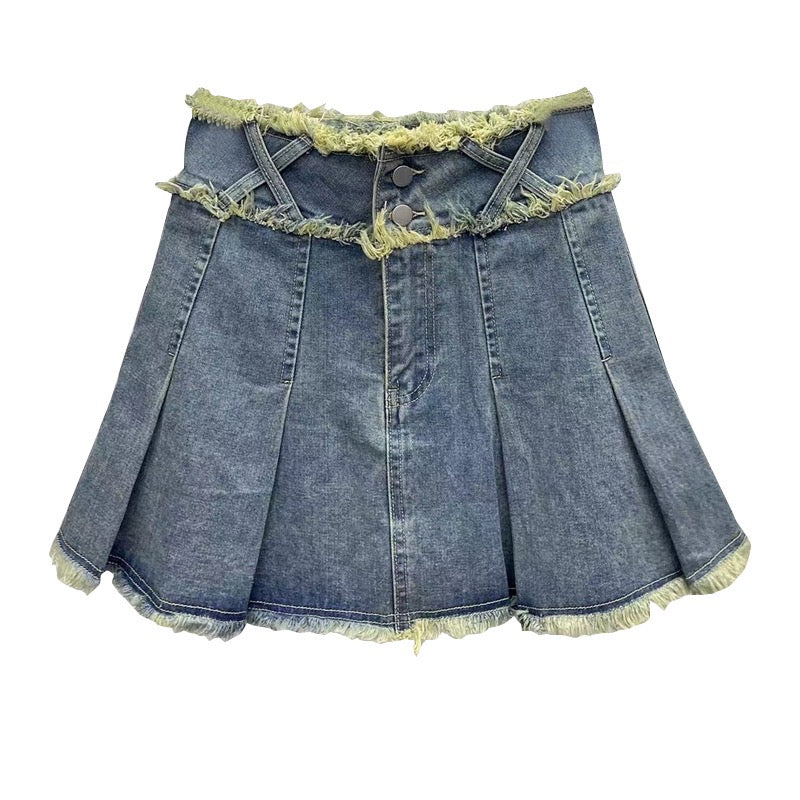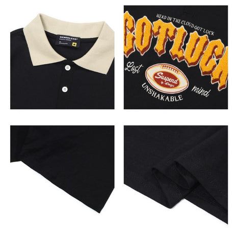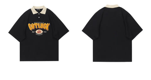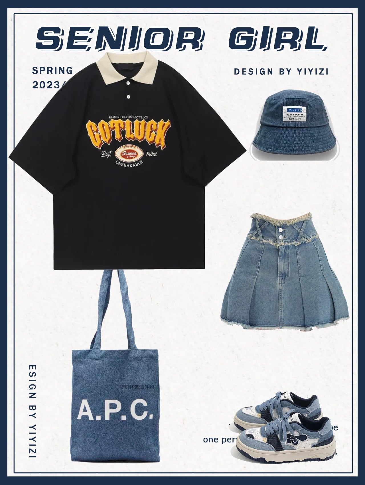 ビンテージタオル刺繍アルファベット混合色半袖ポロシャツ男女ゆったりコーディネート自在夏Tシャツ ジーンズプリーツスカート2023夏新作ハイウエストA字コーディネート自在スカート番号ZT31
