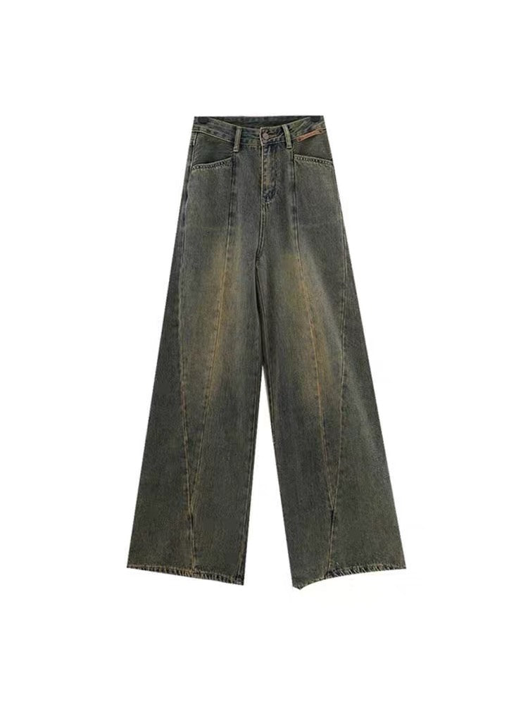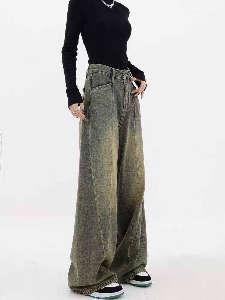 ビンテージ加工古いジーンズ女夏秋新作梨スタイル大きいサイズハイウエスト着痩せドレープ感ワイドパンツ番号ZT549