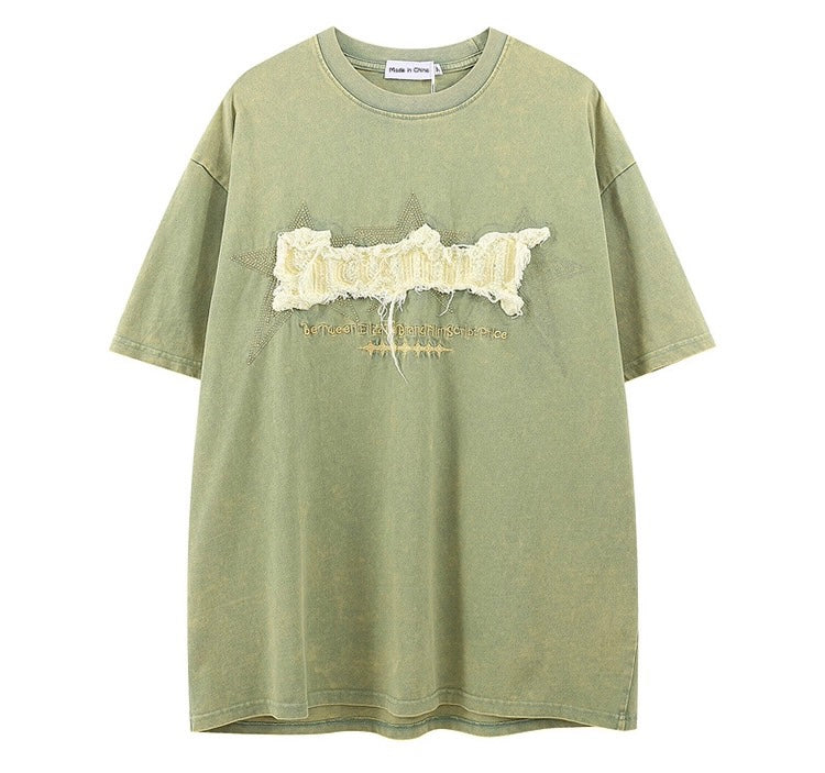 ビンテージ加工古いボアアルファベット夏半袖アメリカンストリートヒップホップカップルteeシャツウォッシュ加工ストリートTシャツ番号ZT243