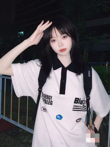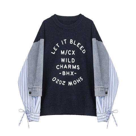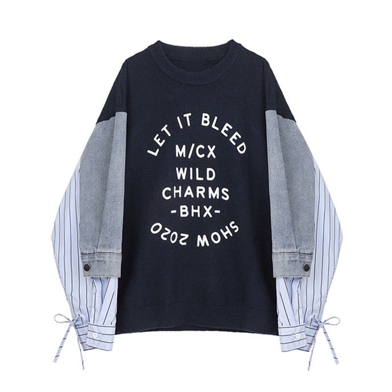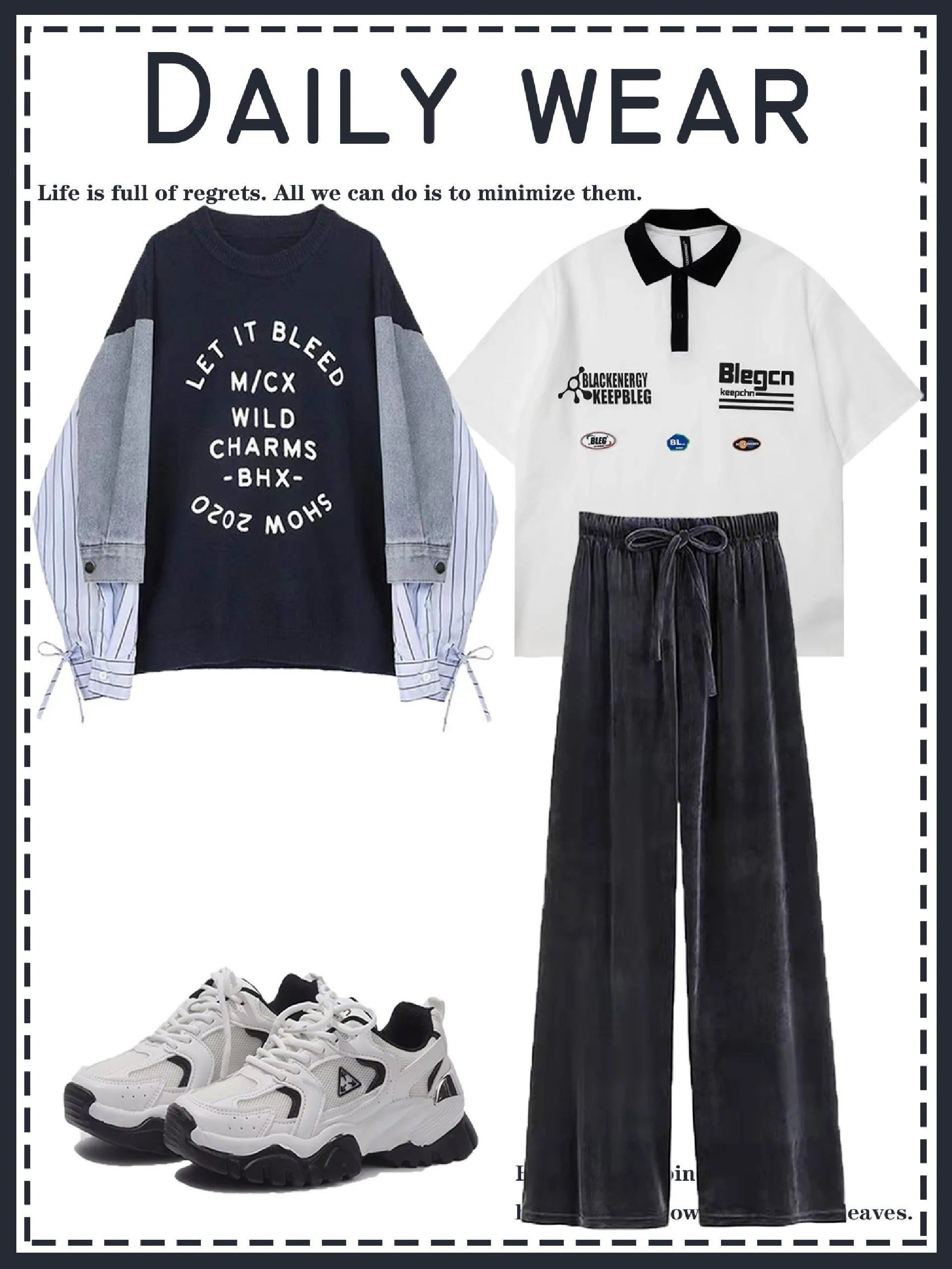 プリントセーター女性ニットデニム切替トップス POLOシャツホワイト半袖Tシャツ夏の少年用ゆったり上着 2023春秋新作ハイウエストストレートパンツ番号ZT61