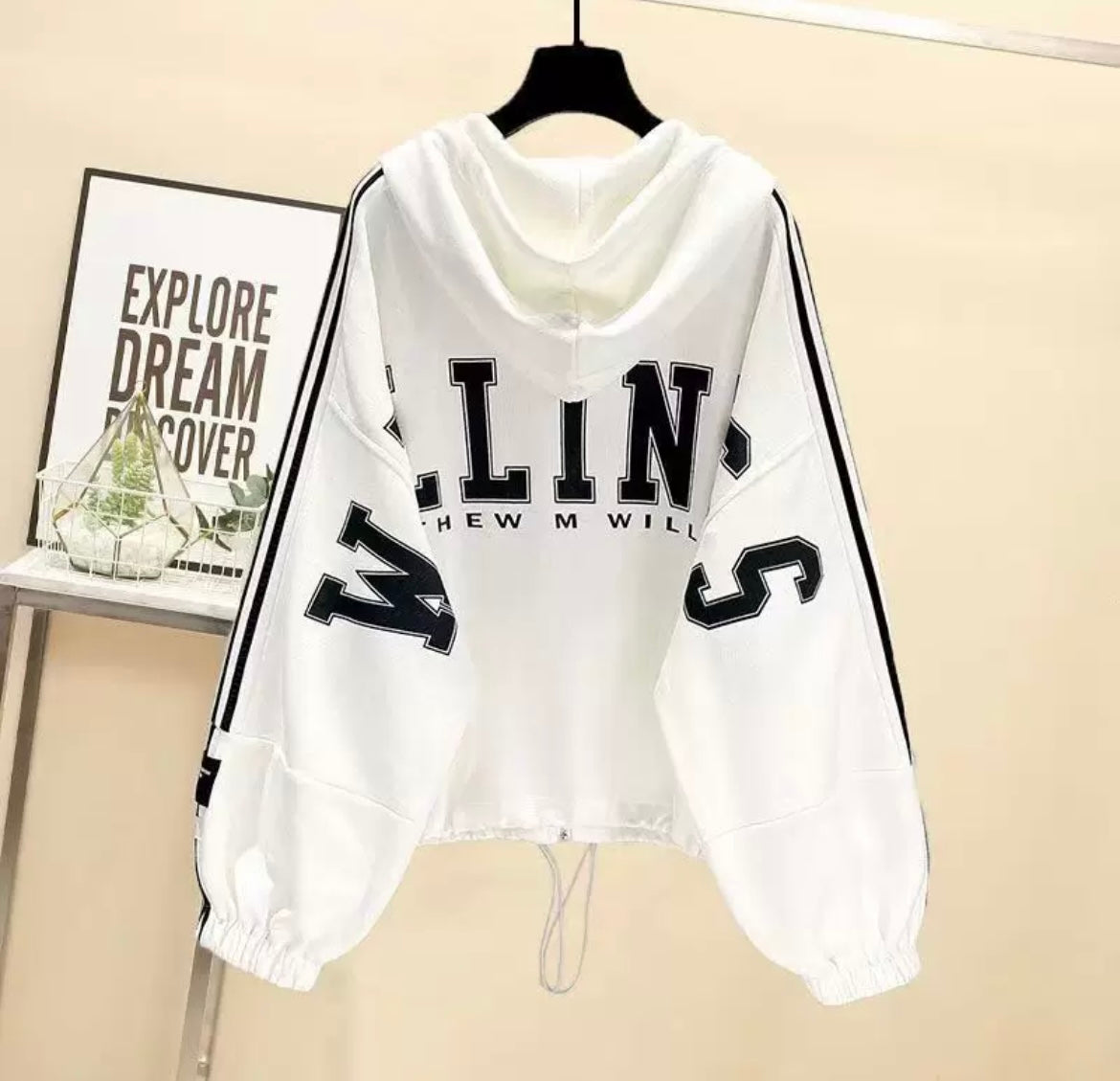 ホワイトゆったりボーダー韓国風スタジャン女春秋デザイン感ジップブルゾンコート番号ZT421