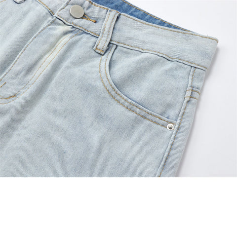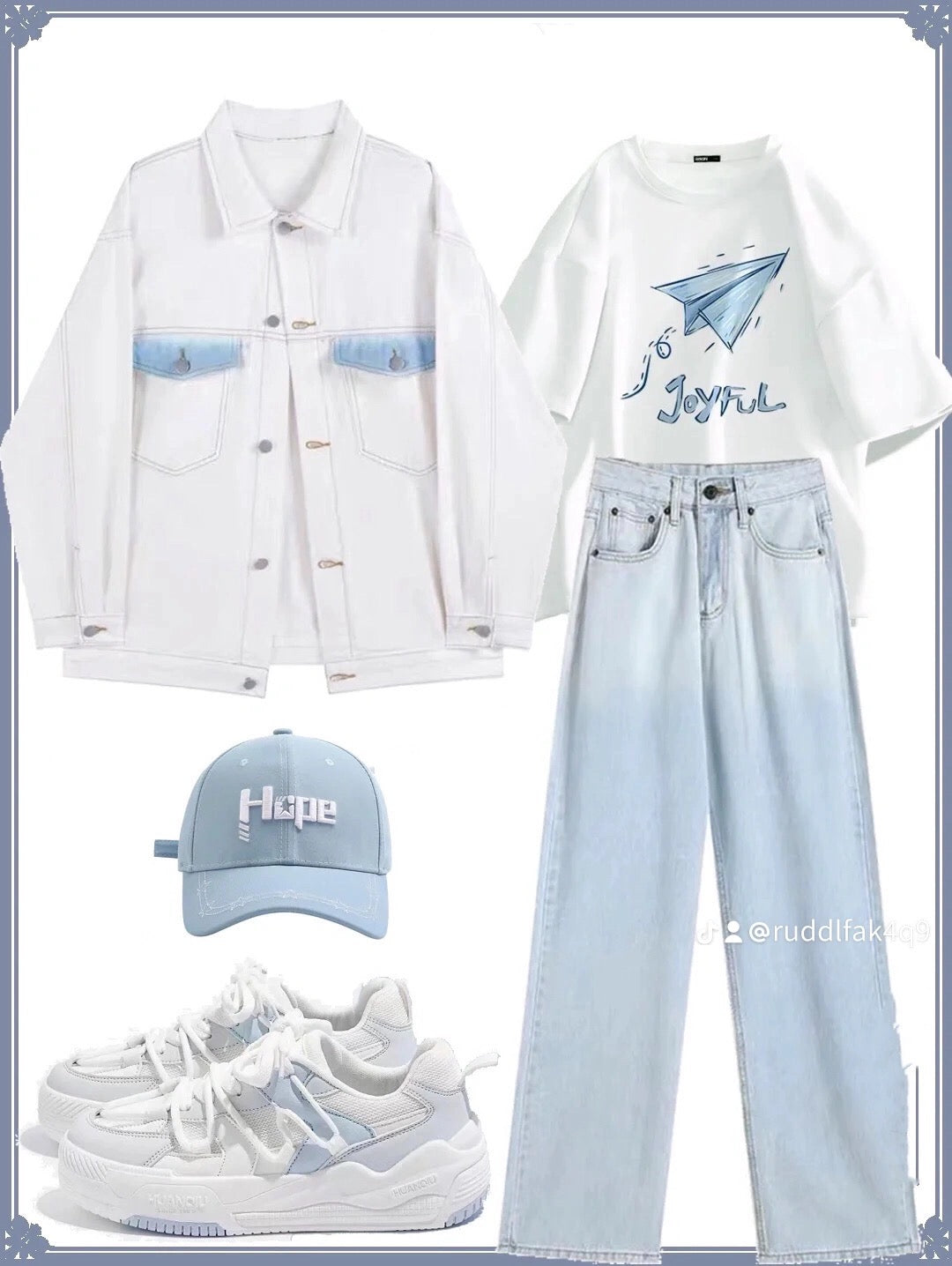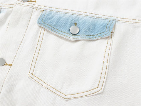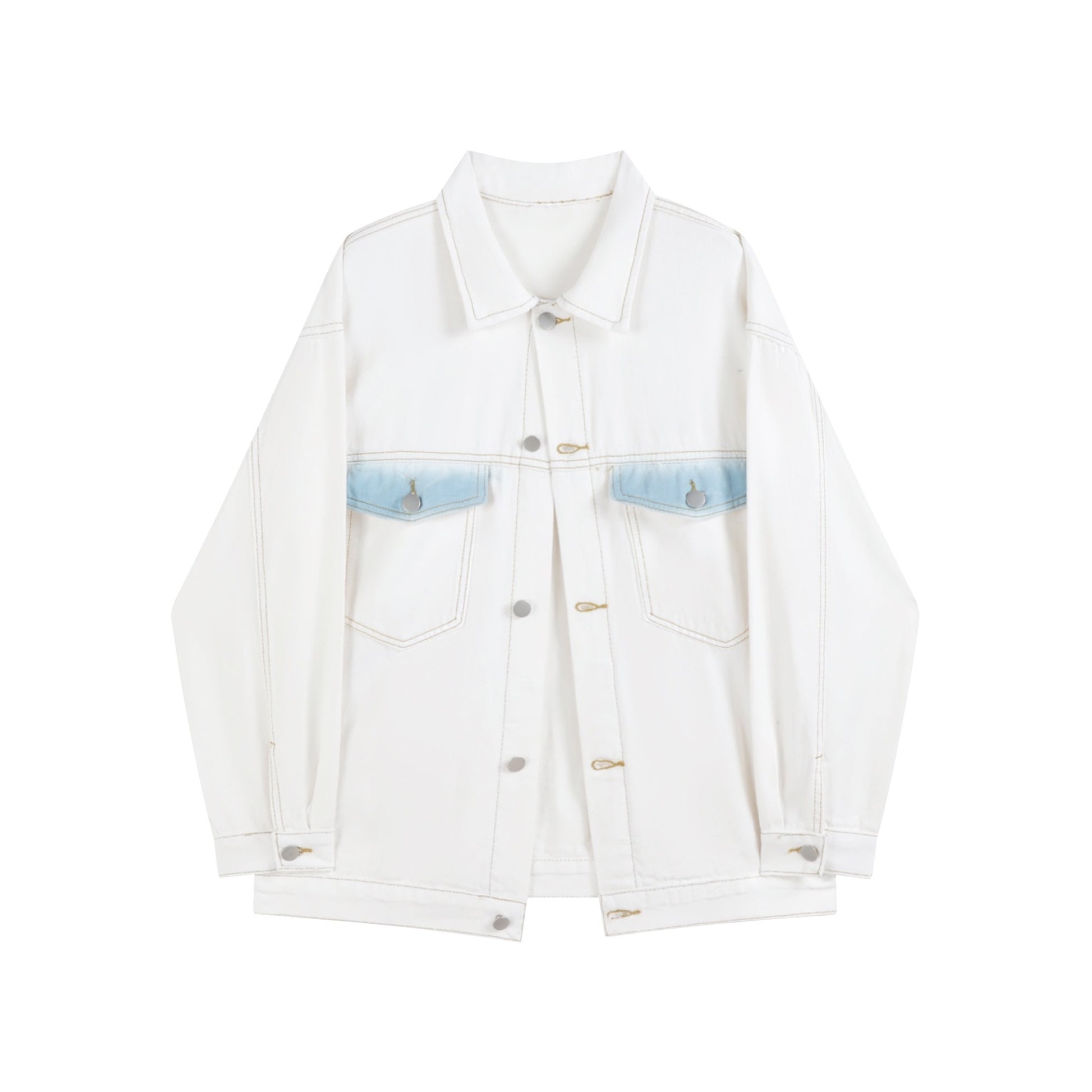 ホワイトデニムジャケットカジュアルコーディネート自在切替ポケット上着 夏ゆったりコーディネート自在綿100%半袖Tシャツグラデーションジーンズハイウエスト着痩せストレートゆったりコーディネート自在ワイドパンツ番号ZT45