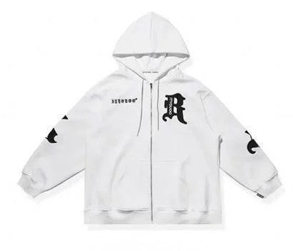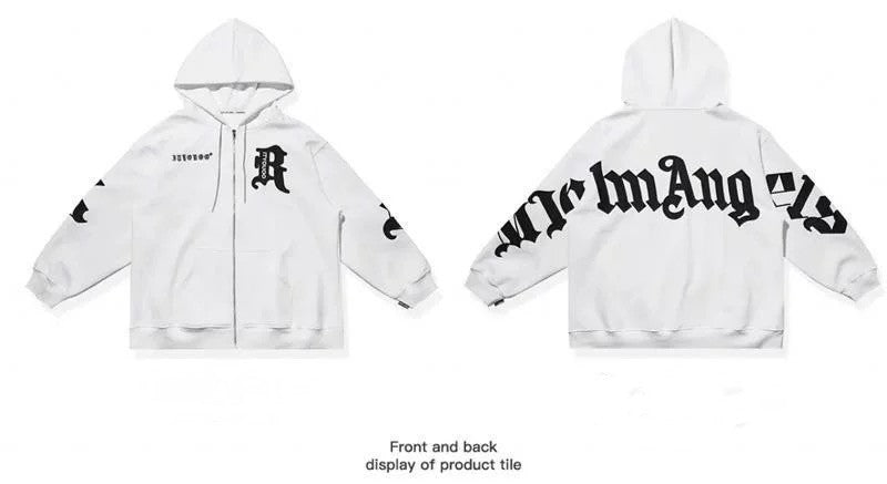 ホワイトロゴプリントオーバーサイズパーカー - トレンドストリートファッション 男女兼用番号ZT675