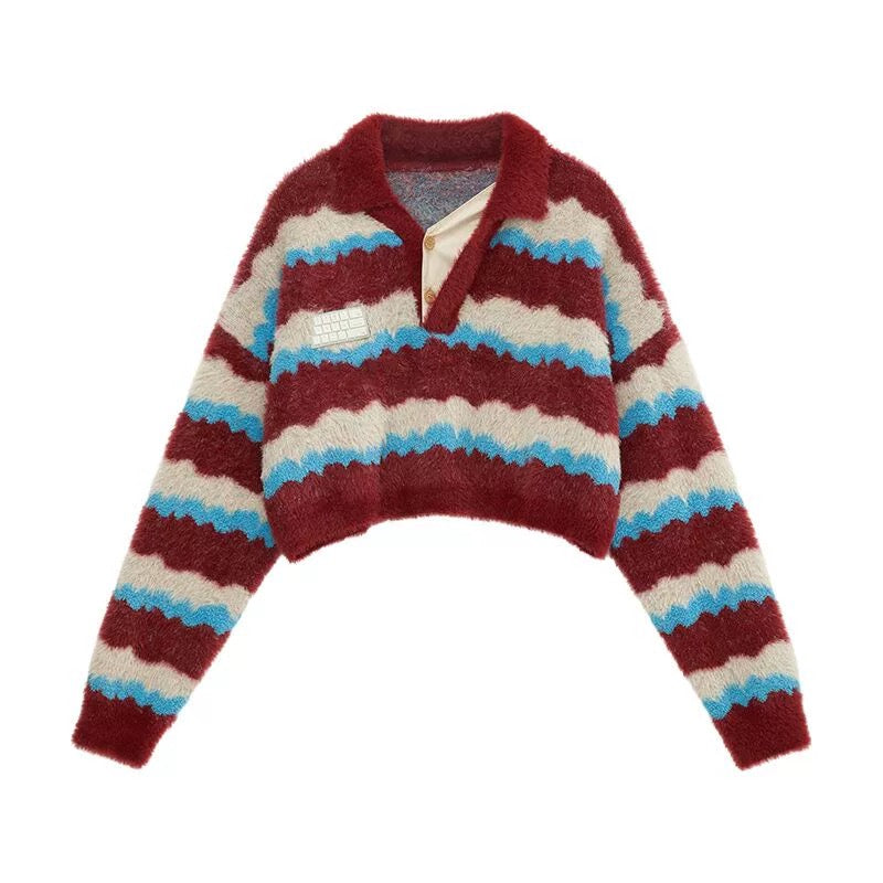 ボーダーショートタイプセーター新作オリジナルデザイン小衆ゆったりニットコート上着/タンクトップジャケットセクシーなインナー/2023年新作ゆったり着痩せ長身ワイドパンツ番号ZT355