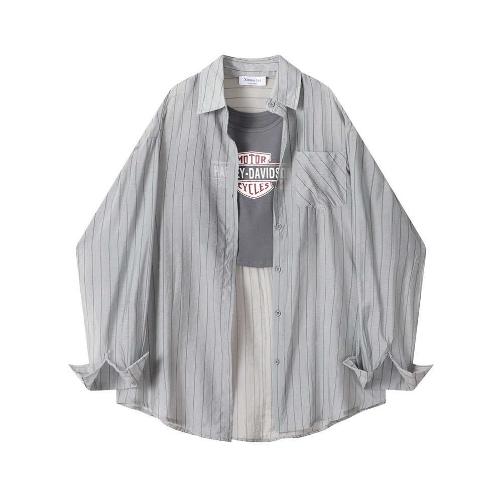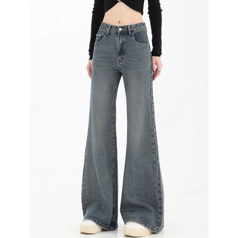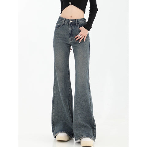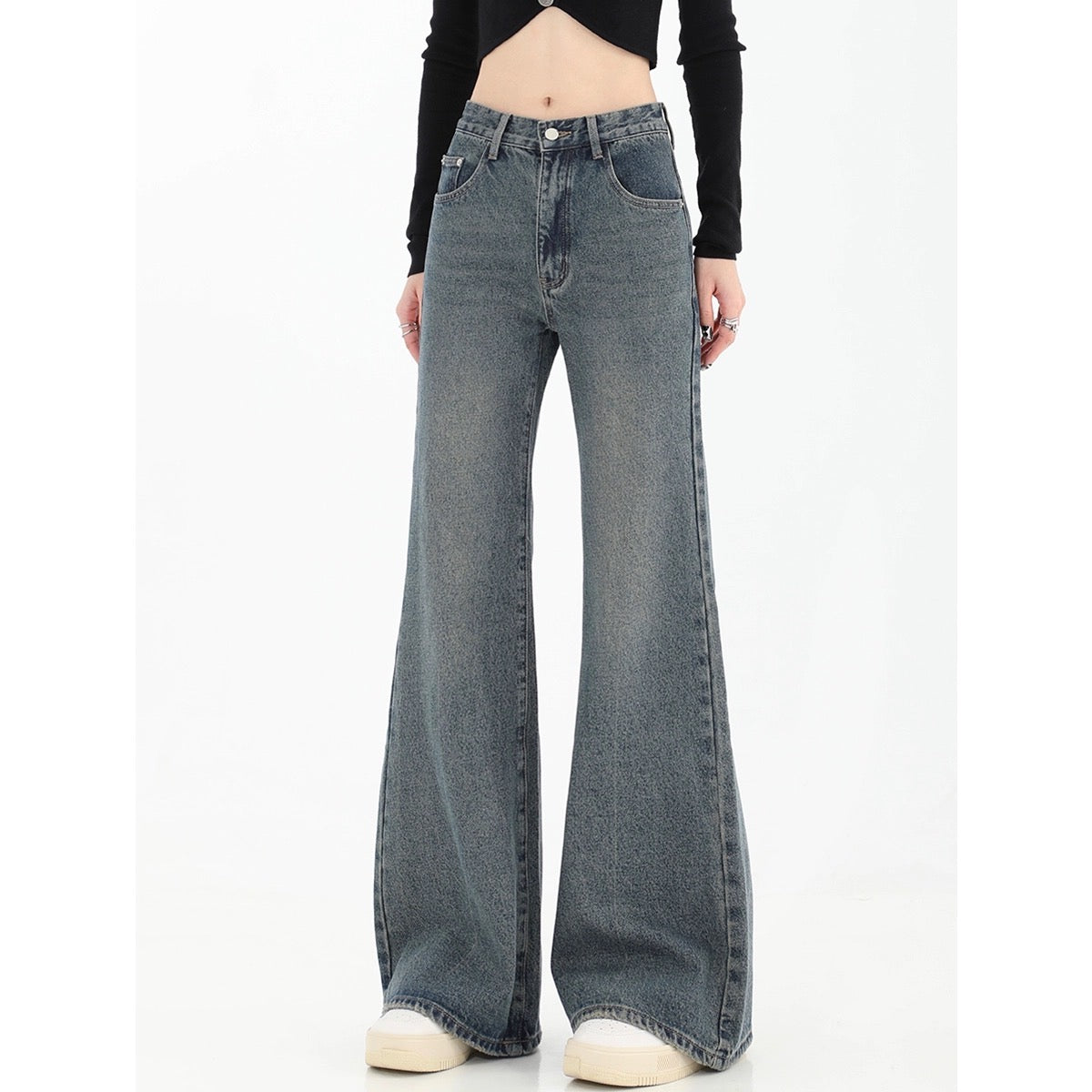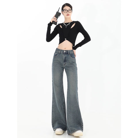 ボーダー日焼け止めシャツ女性太った妹キャミソール気品着痩せ2点セット大サイズ アメリカ復古ハイストリートジーンズ女性春秋新作ハイウエスト着痩せハイウエストストレートフレアパンツ番号ZT413