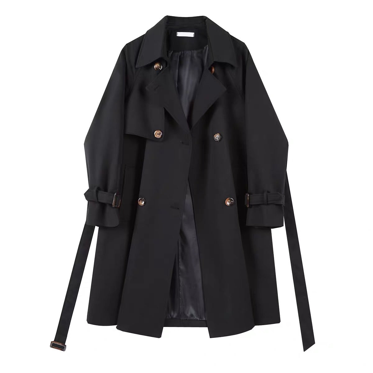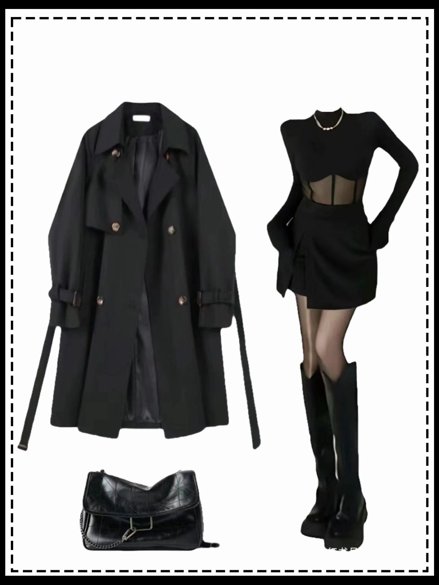 ミドル・ロングタイプウェストシェイプのトレンチコート女性秋冬2023新作韓国風小柄なストラップコート韓国風ギャルメッシュワンピースTシャツ女性春夏ブラック長袖セミハイネックインナーショート上着番号 ZT559