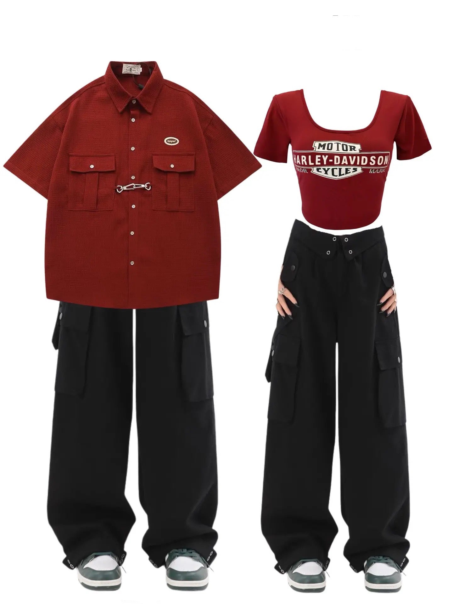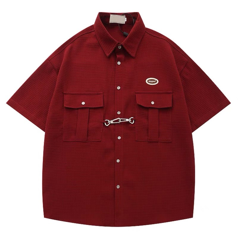 メタルボタン半袖シャツアメリカンストリートビンテージカップシャツ中性ゆったりBF風ジャケット番号ZT309