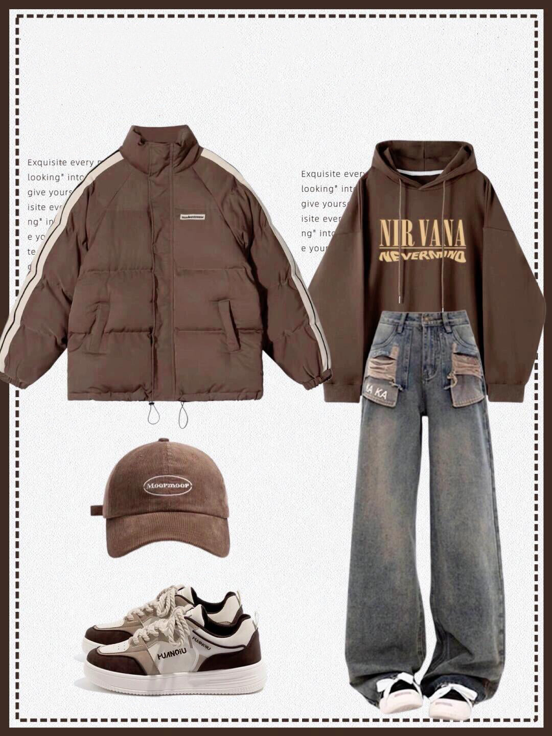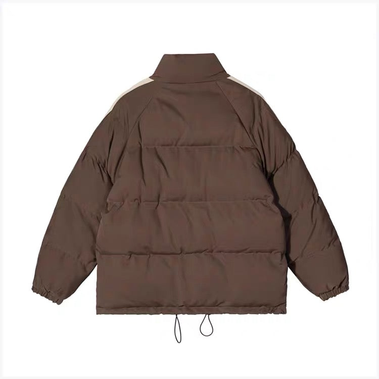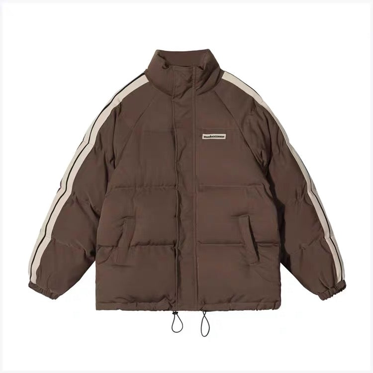 ユニセックス冬用ダウンジャケット|ブラウンストライプ切り替え保温アウター|ブラウン厚手冬用ジャケット番号ZT672