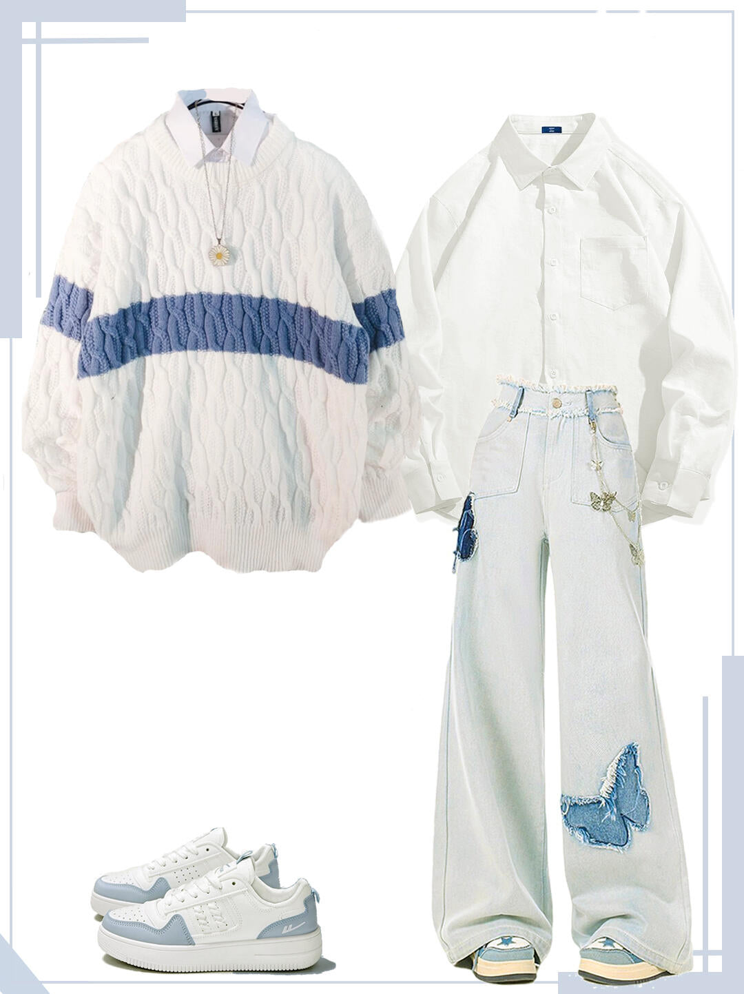 ルーズスタイル 配色セーター メンズ 冬 厚手 クルーネック カップル向け オールマッチ ツイスト柄 ニットプルオーバー アウター/アメリカンレトロ バタフライデザイン 個性的 デニムパンツ レディース 春秋 ハイウエスト ゆったり カジュアル ワイドレッグ ロングパンツ番号ZT661