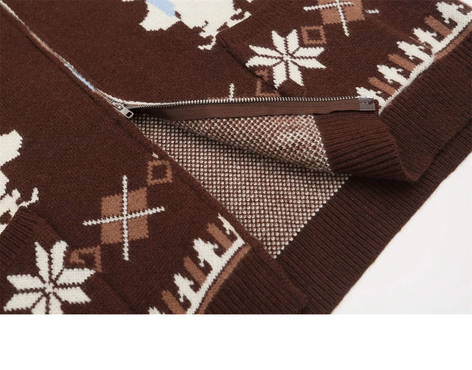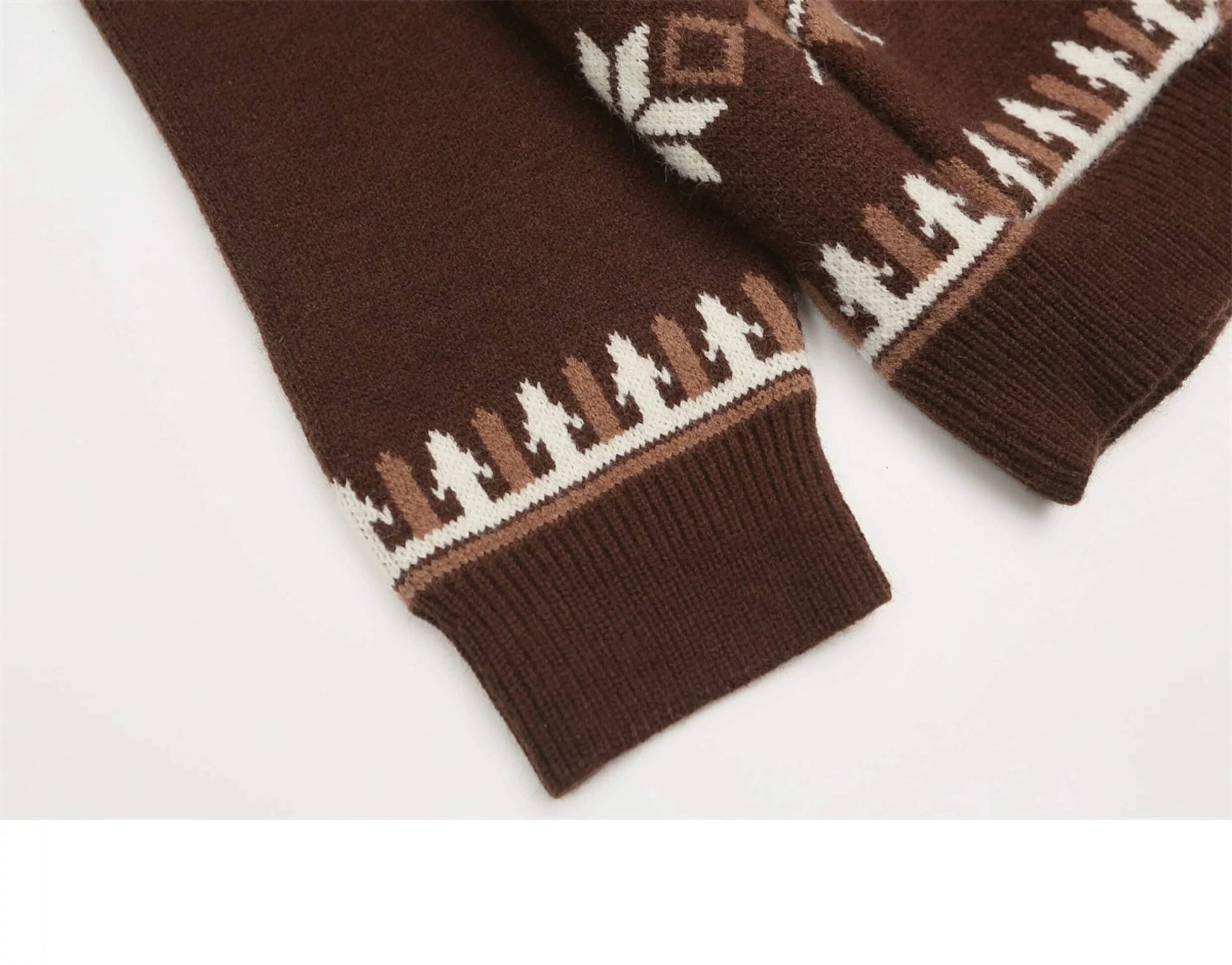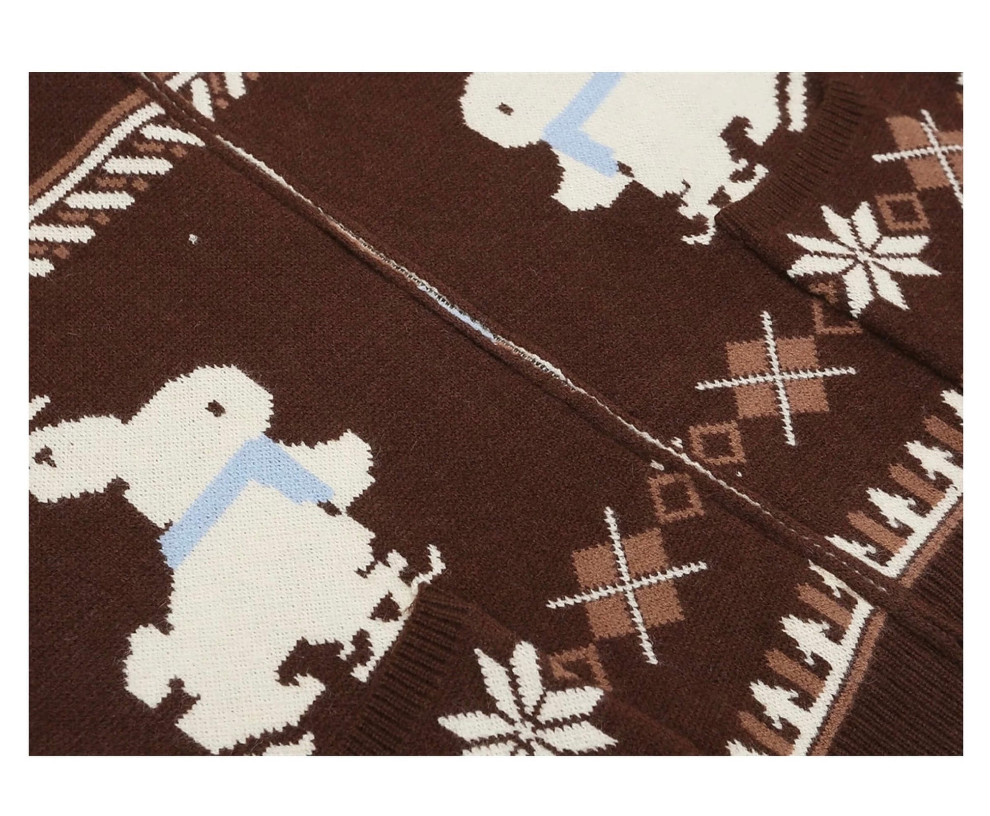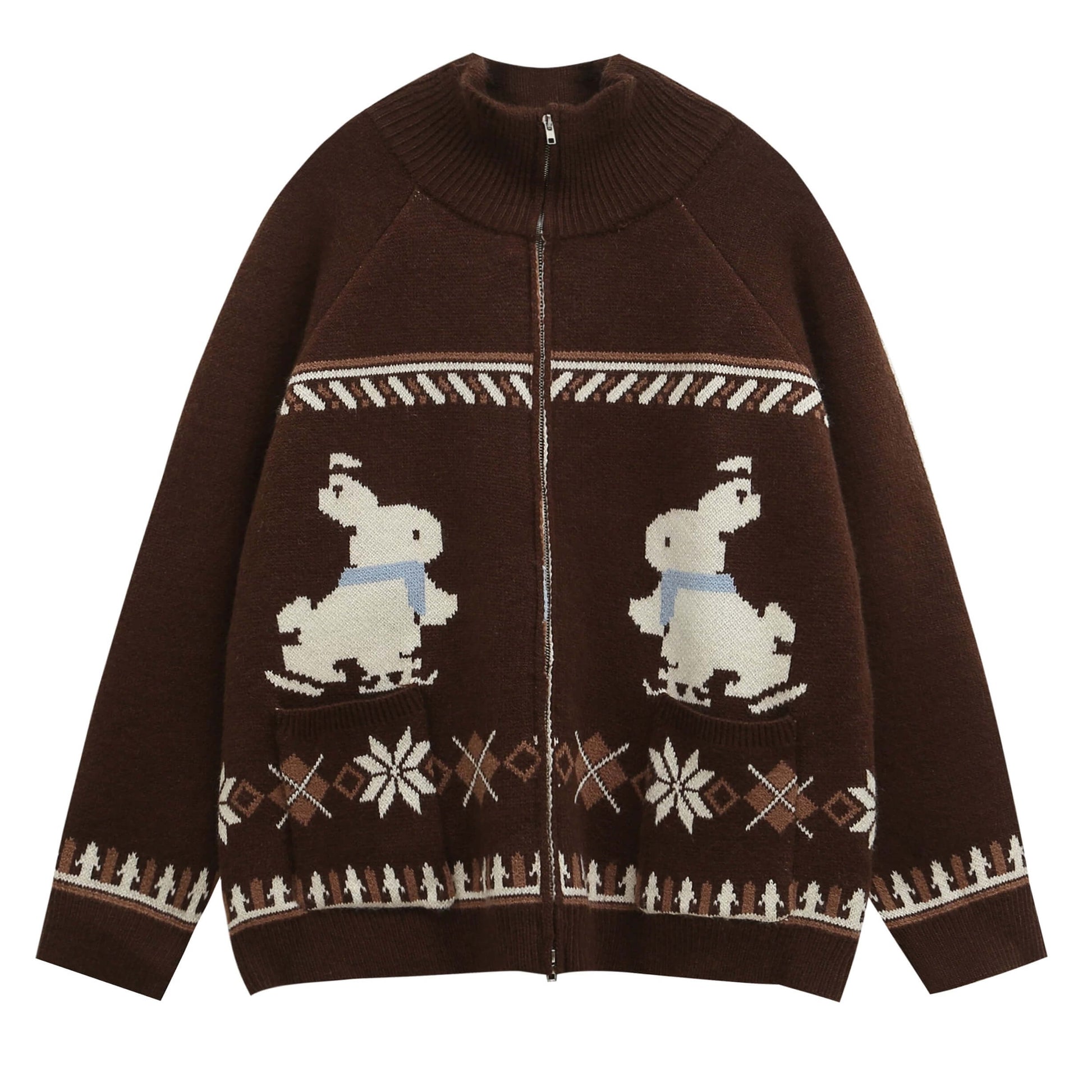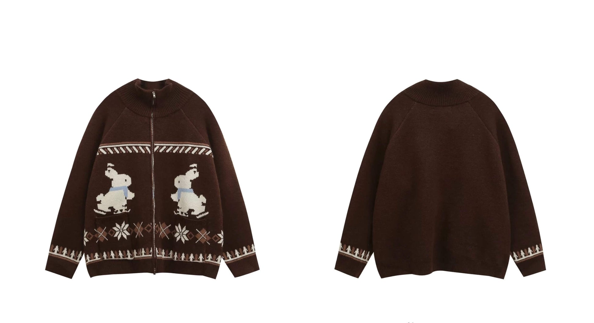 柔らかな糸で編まれたブラウンのカートゥーン柄ニットカーディガン。レトロで可愛いデザインとゆったりとしたシルエットが魅力。春秋冬のデイリーコーデにぴったりな一枚です。
