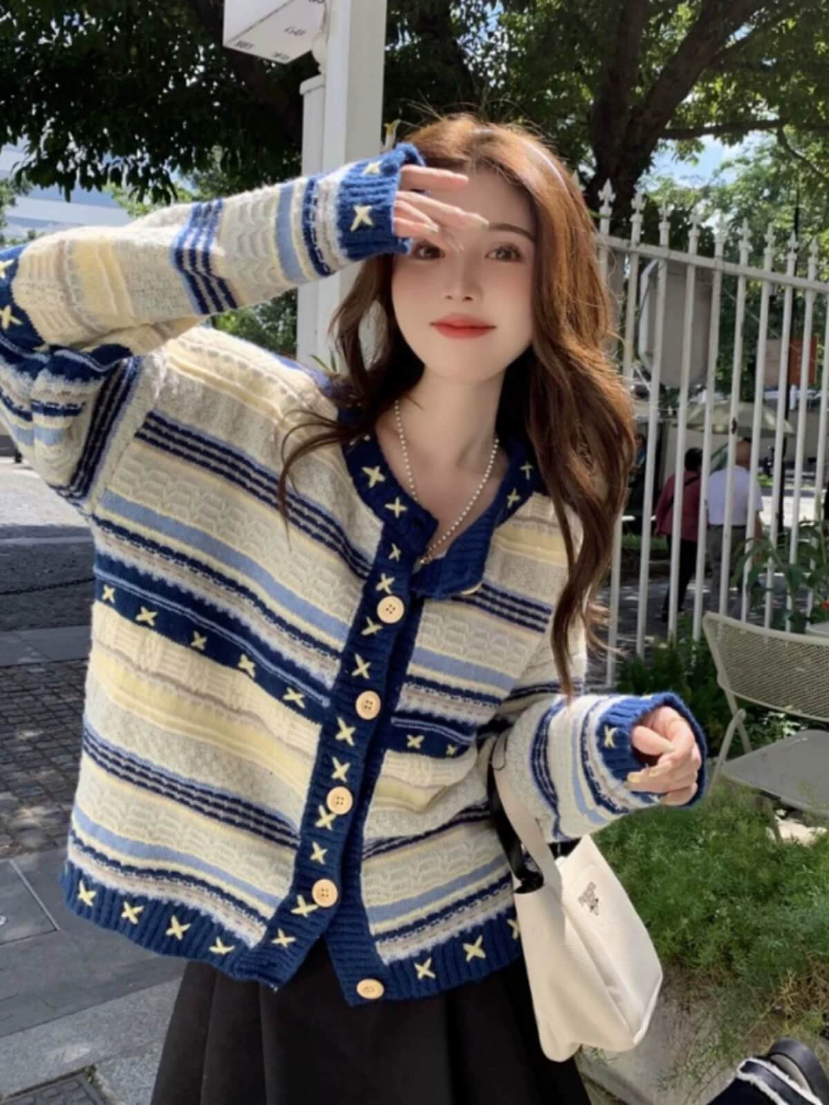 レトロで可愛い民族風デザインのニットカーディガン。柔らかく暖かい素材で、秋冬のデイリーコーデにぴったり。ゆったりシルエットで体型カバーも◎。ボタン付きで着脱も便利、カジュアルからナチュラル系まで幅広く活躍します