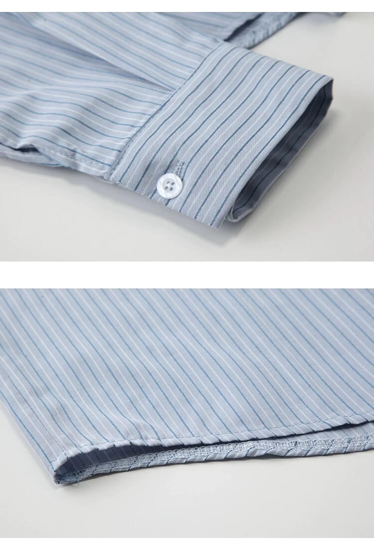 このヴィンテージストライプ柄シャツは、ルーズフィット+クラシックなピンストライプデザインで、エレガントなスクールスタイルを演出します。個性的なネクタイアクセントが加わり、洗練された印象をプラス。韓国風ミニマルコーデやヴィンテージストリートスタイルにぴったりの一枚です。しっかりとしたハリのある生地で、通気性が良く快適な着心地。単独での着用はもちろん、ライトアウターとしてレイヤードコーデにも活躍。通勤、キャンパスライフ、デイリーカジュアルコーデにも適し、簡単におしゃれなスタイルが完成します。