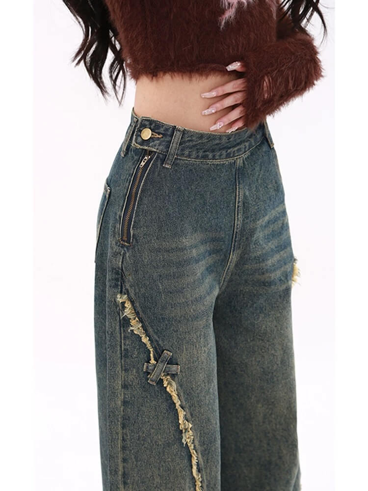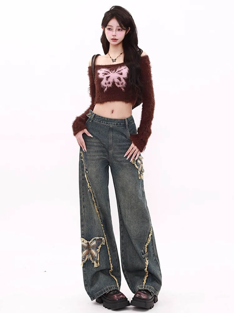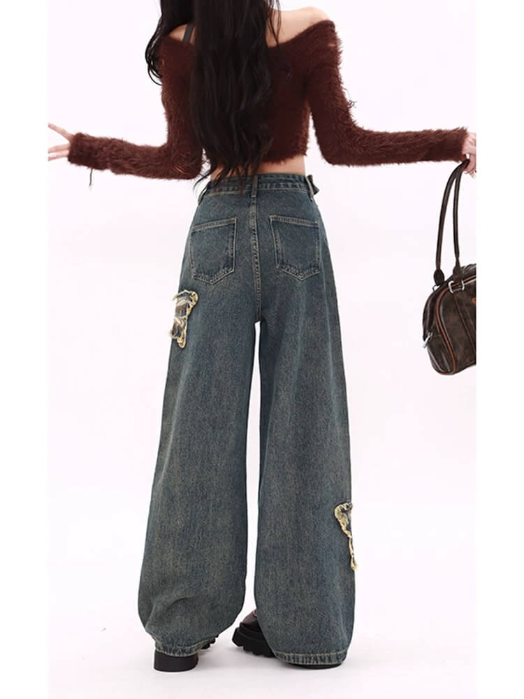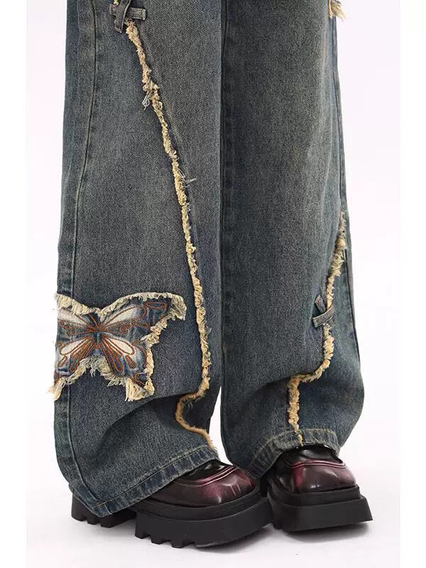 このハイウエスト バタフライパッチ ダメージデニムパンツは、個性的なパッチワークデザイン+ルーズシルエットのフルレングスワイドパンツで、Y2Kヴィンテージストリートスタイルを演出します。繊細な蝶刺繍のワッペン装飾とダメージ加工を組み合わせ、立体感をプラスし、ユニークなファッションスタイルを表現。ハイウエストデザインでスタイルアップし、脚長効果も抜群。クロップドトップス、スウェット、マーチンブーツなどと合わせれば、簡単にエッジの効いた個性派コーデが完成します。