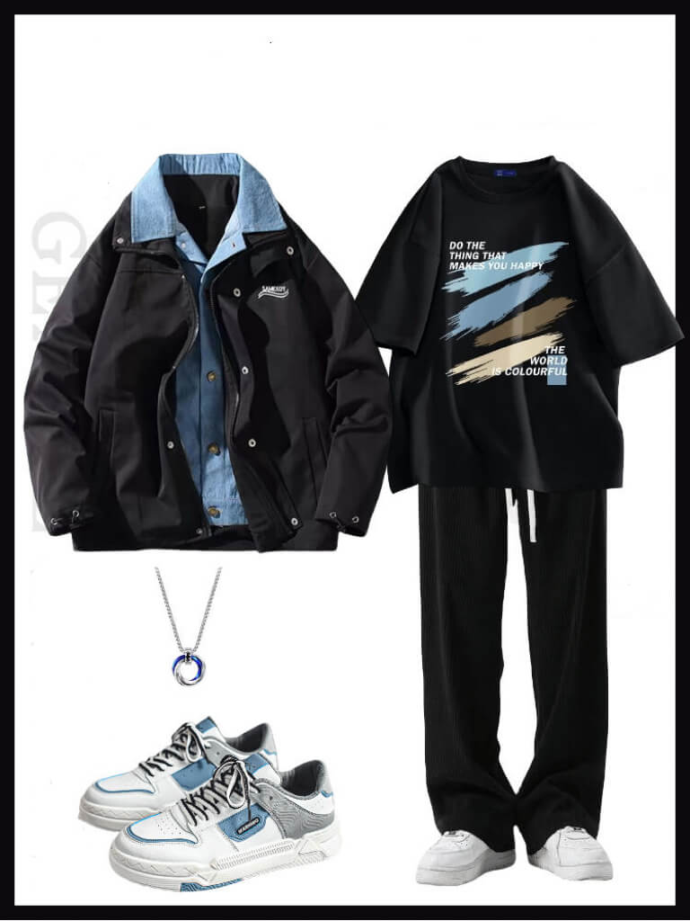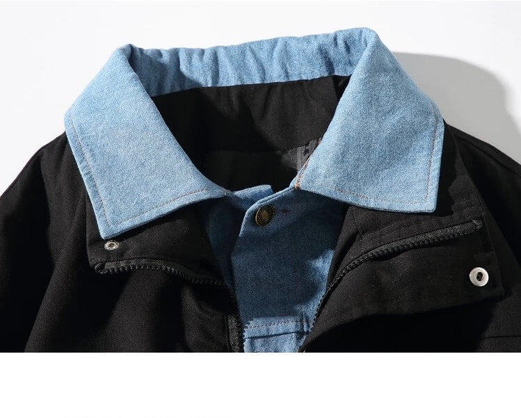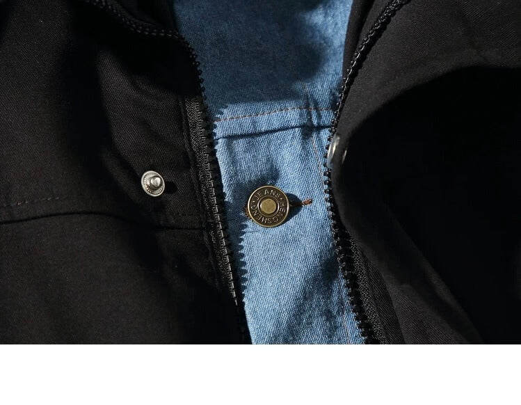 このヴィンテージワークスタイルパッチワークジャケットは、2レイヤーデザインを採用し、ブラックのワークジャケットとデニムシャツを巧みに組み合わせた、立体感のあるストリートファッションスタイルを演出します。アウター部分は防風性と耐久性に優れた素材を使用し、インナーのデニムシャツがヴィンテージ感をプラス。おしゃれさと実用性を兼ね備えたデザインです。ゆったりとしたシルエットでどんな体型にもフィットし、Tシャツ、カジュアルパンツ、ワークパンツと組み合わせることで、簡単に日系ストリートファッションを完成させることができます。