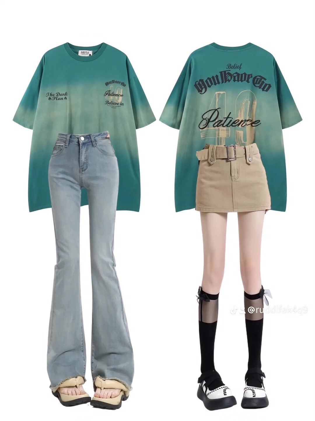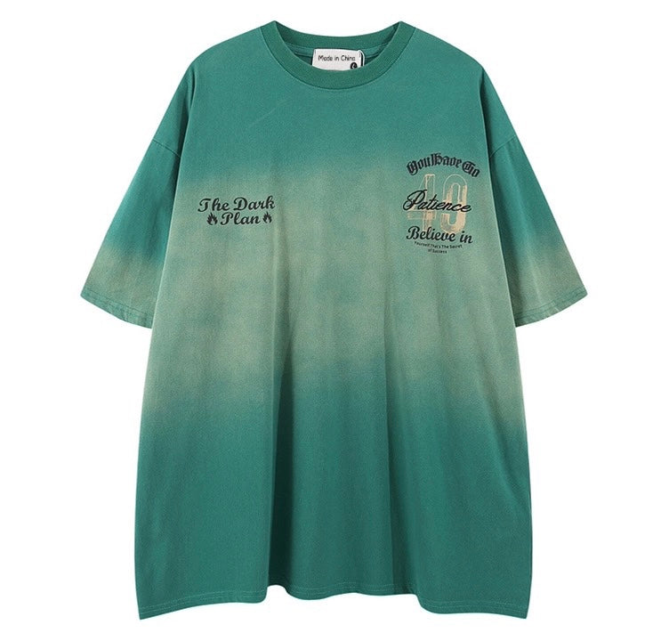 ヴィンテージ数字のグラデーションで作った古い半袖アメリカンストリートニュートラルカップルteeシャツ夏のゆったりとしたヒップホップTシャツ番号ZT317