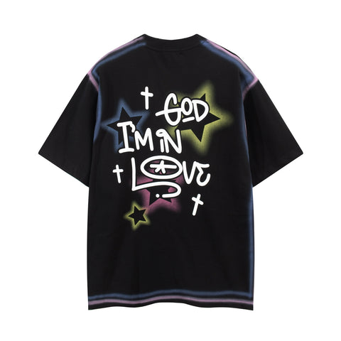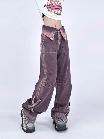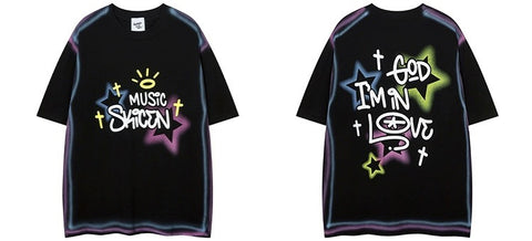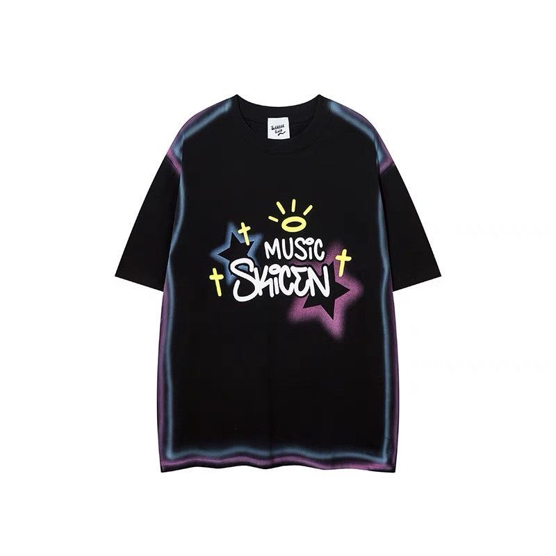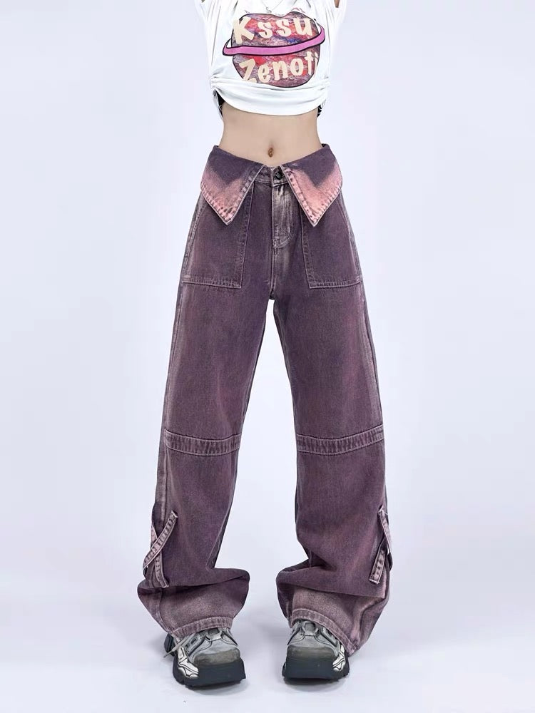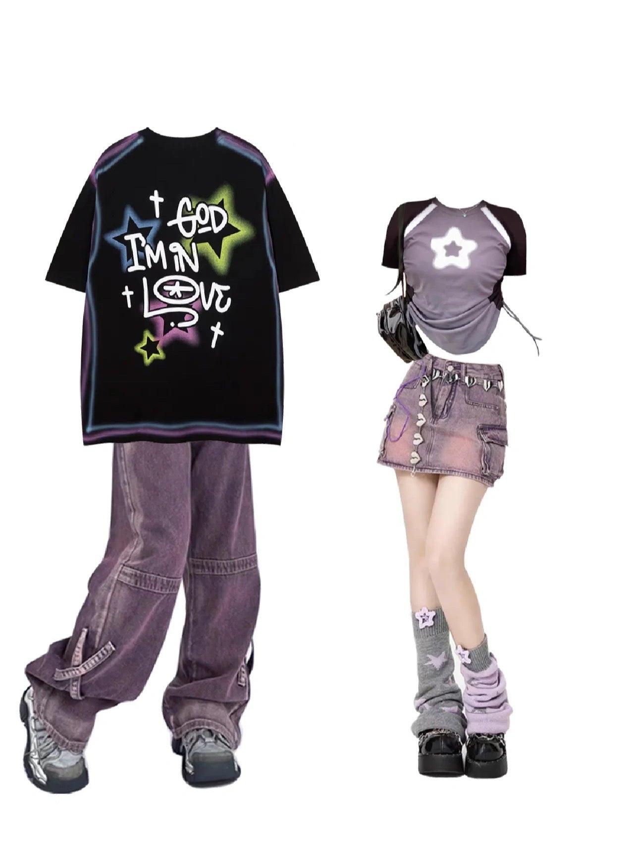 個性的な星半袖Tシャツ男女ストリートhiphopゆったりカップルTシャツ ブルーハイウエストストレートルーズジーンズ女夏薄タイプ2023新作ワイドパンツ番号ZT306