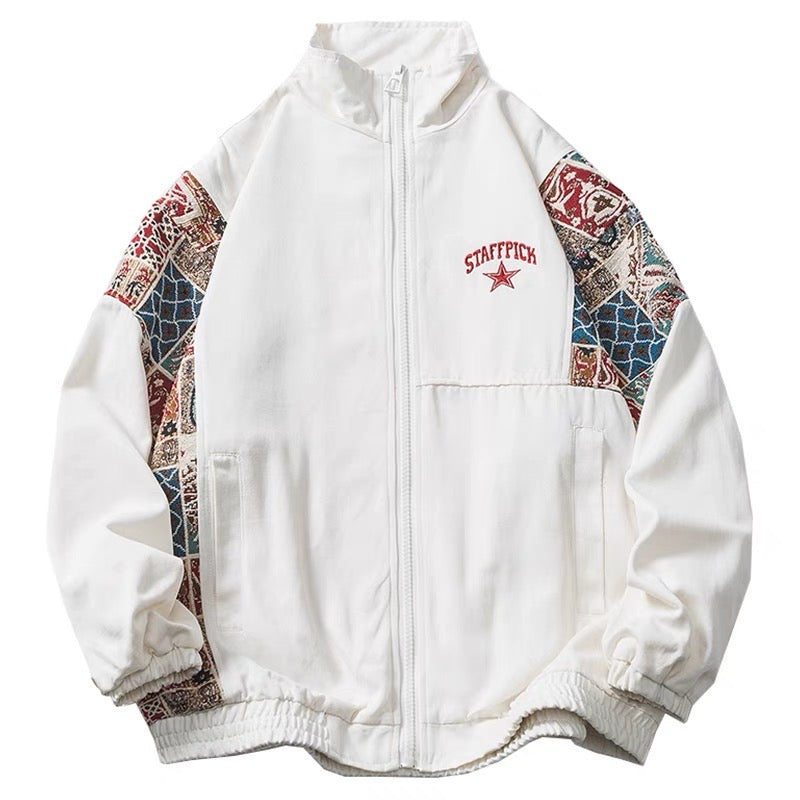 切替スタンドカラージャケット男復古ストリートゆったりカップルコーディネート自在カジュアルジャケット番号ZT491