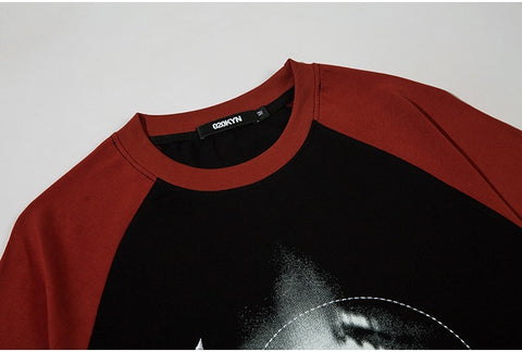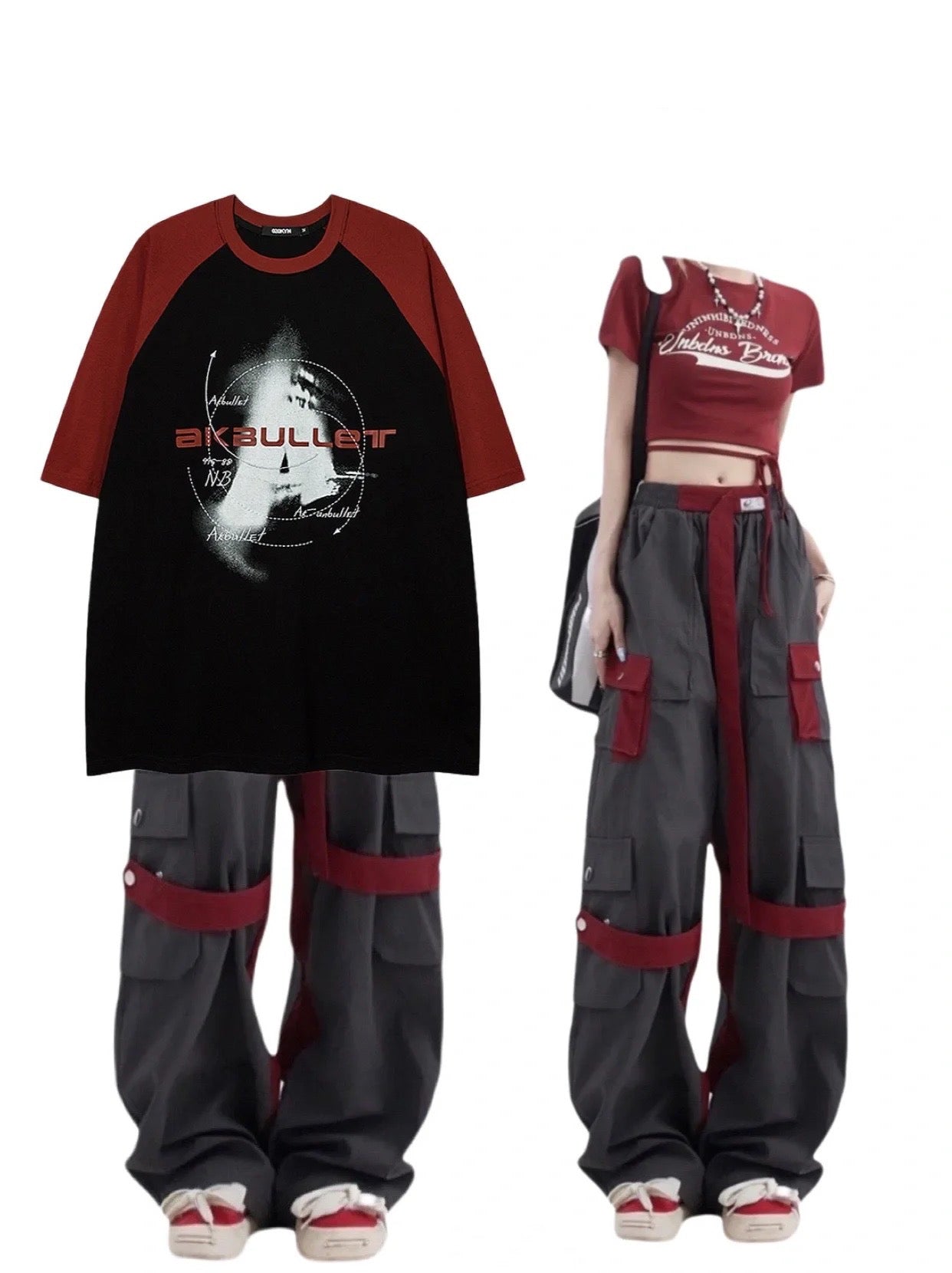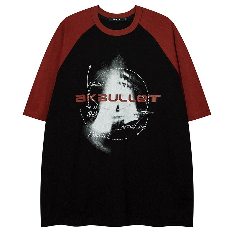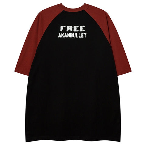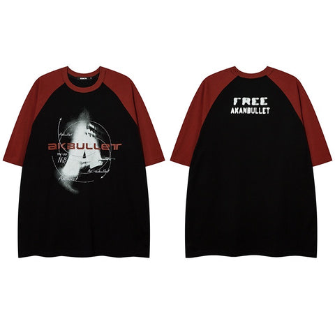 切替落書きアルファベット刺繍カジュアルラグランTシャツ男女bf風純綿半袖 アメリカ風復古アルファベットプリント半袖Tシャツ女性夏ギャルスリム着痩せおへそ出し上着番号ZT126