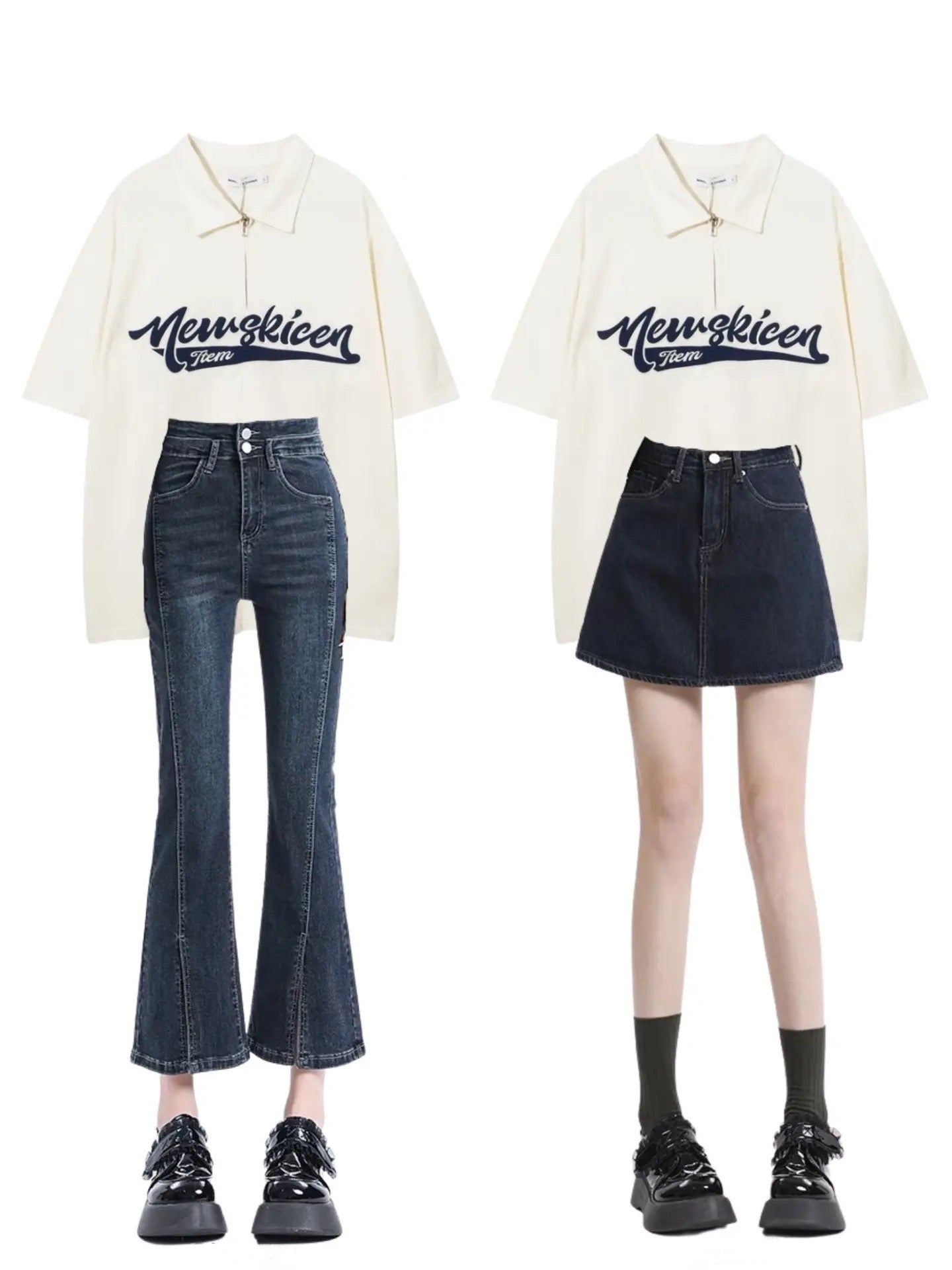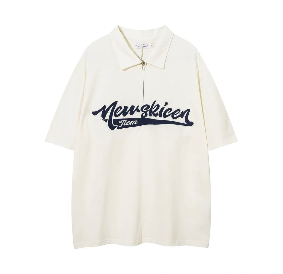 刺繍アルファベットファスナーPOLOシャツ半袖男ゆったりトレンドブランドストリート折り襟Tシャツ番号ZT319