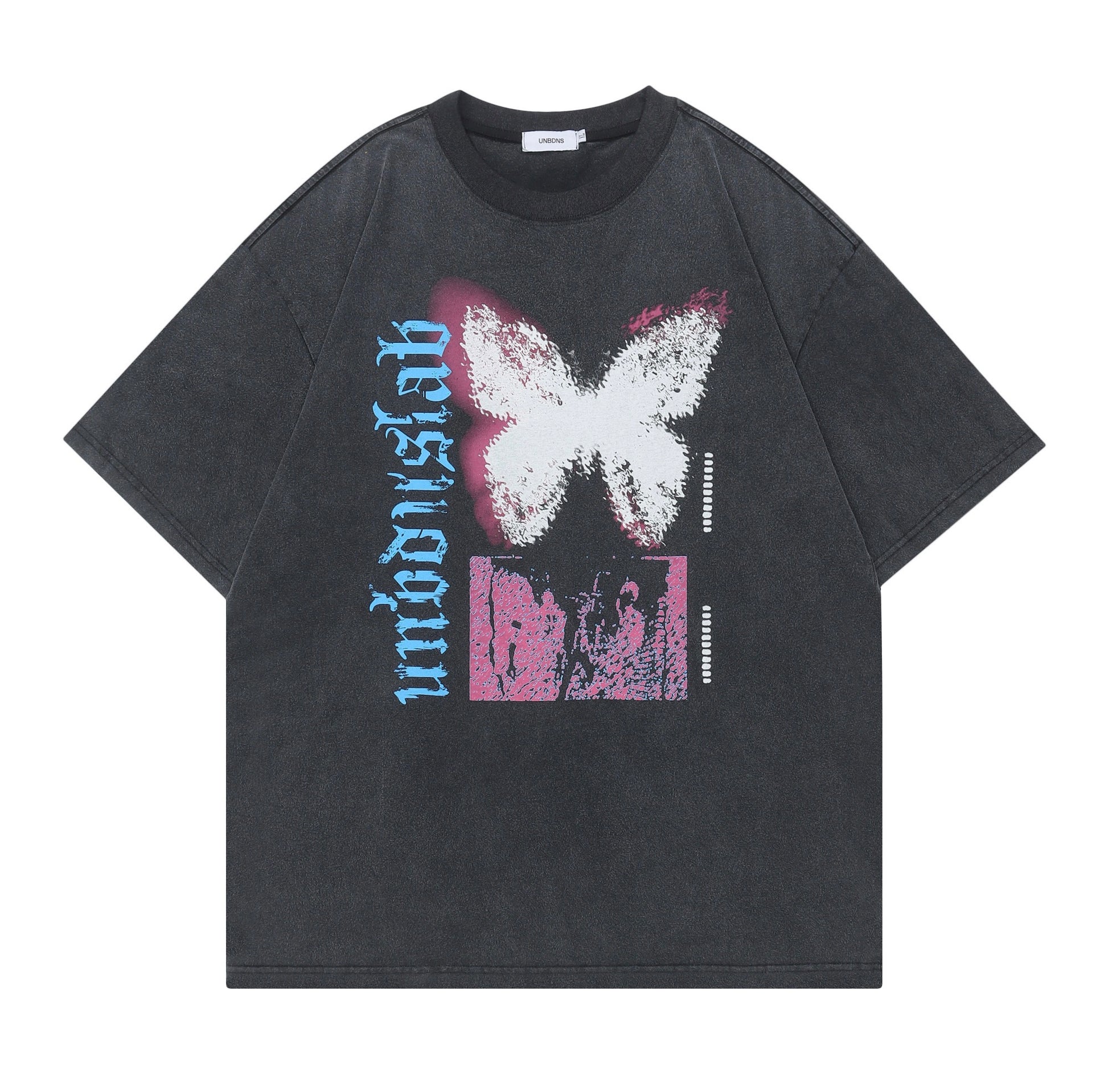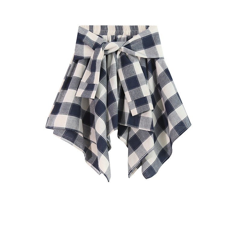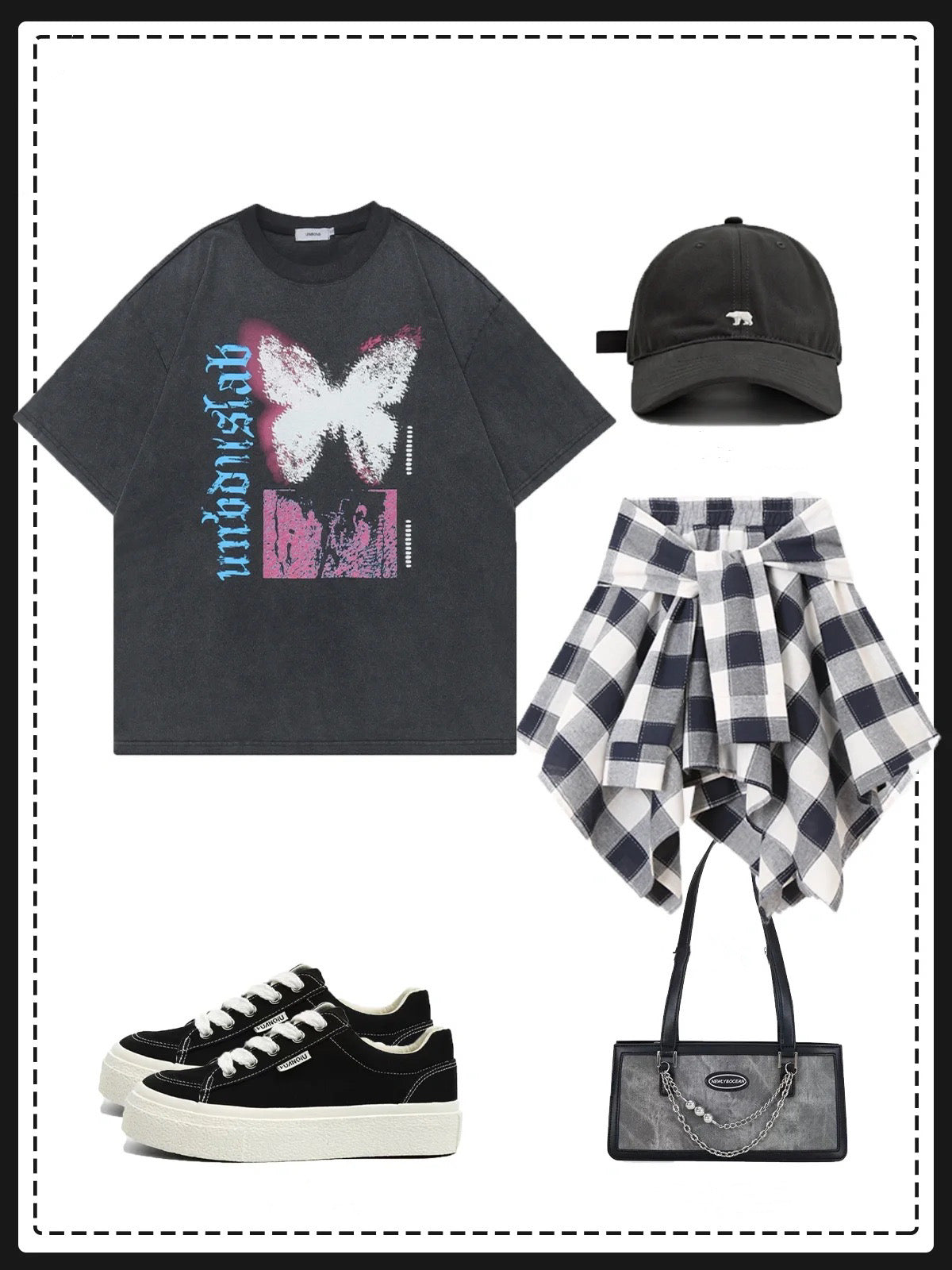 半袖個性的なプリントアメリカンヴィンテージウォッシュ加工ユーズド着やせTシャツ 夏新作モノクロチェック不規則スカート番号ZT167