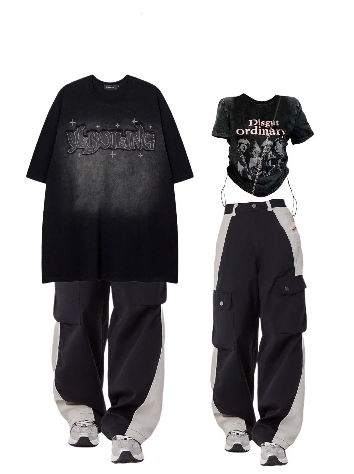 夏のグラデーションプリント刺繍半袖Tシャツカジュアルでコーディネート自在OVERSIZE hiphopワイドレッグアメリカンスウェットパンツ番号ZT118