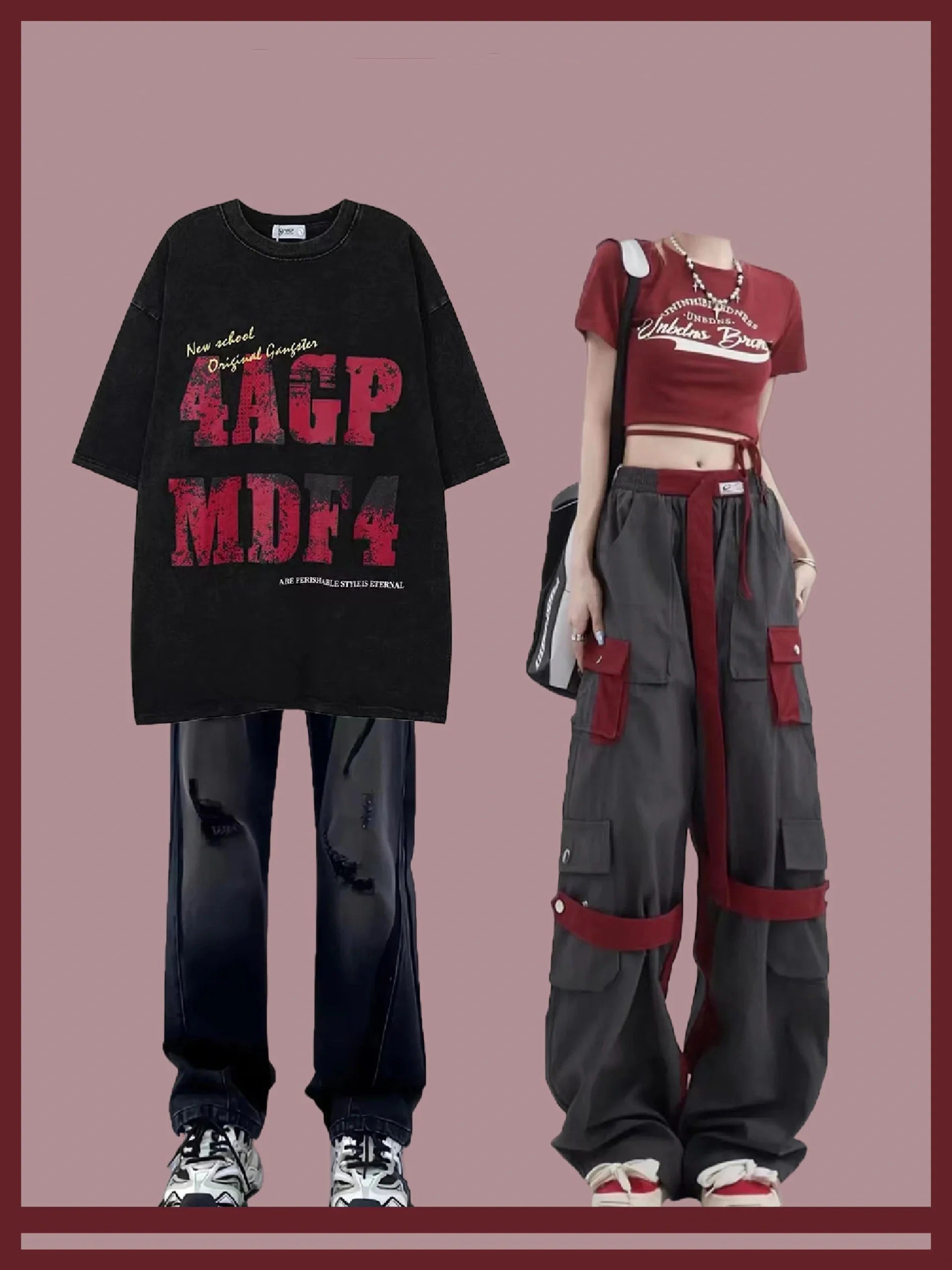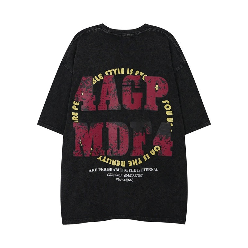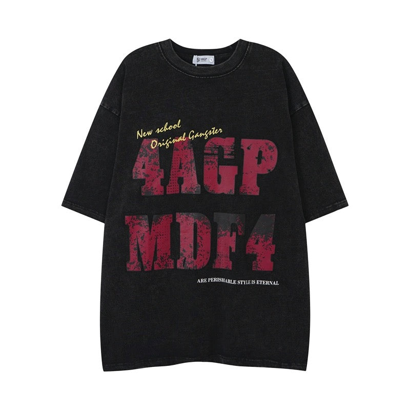 夏アメリカ風ストリートで作った古いレトロアルファベット半袖Tシャツoversizeゆったりoldschool個性的な半袖上着番号ZT301