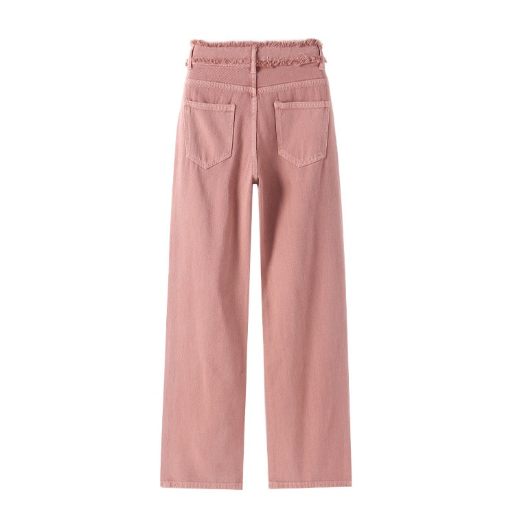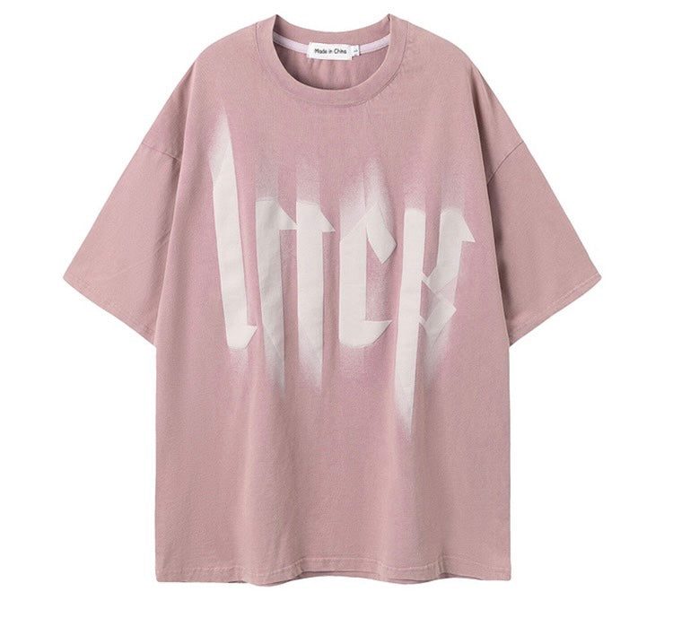 夏アメリカ風復古ストリート中性カップルTシャツ男女/2023年春夏ピンクストレートジーンズ番号ZT33