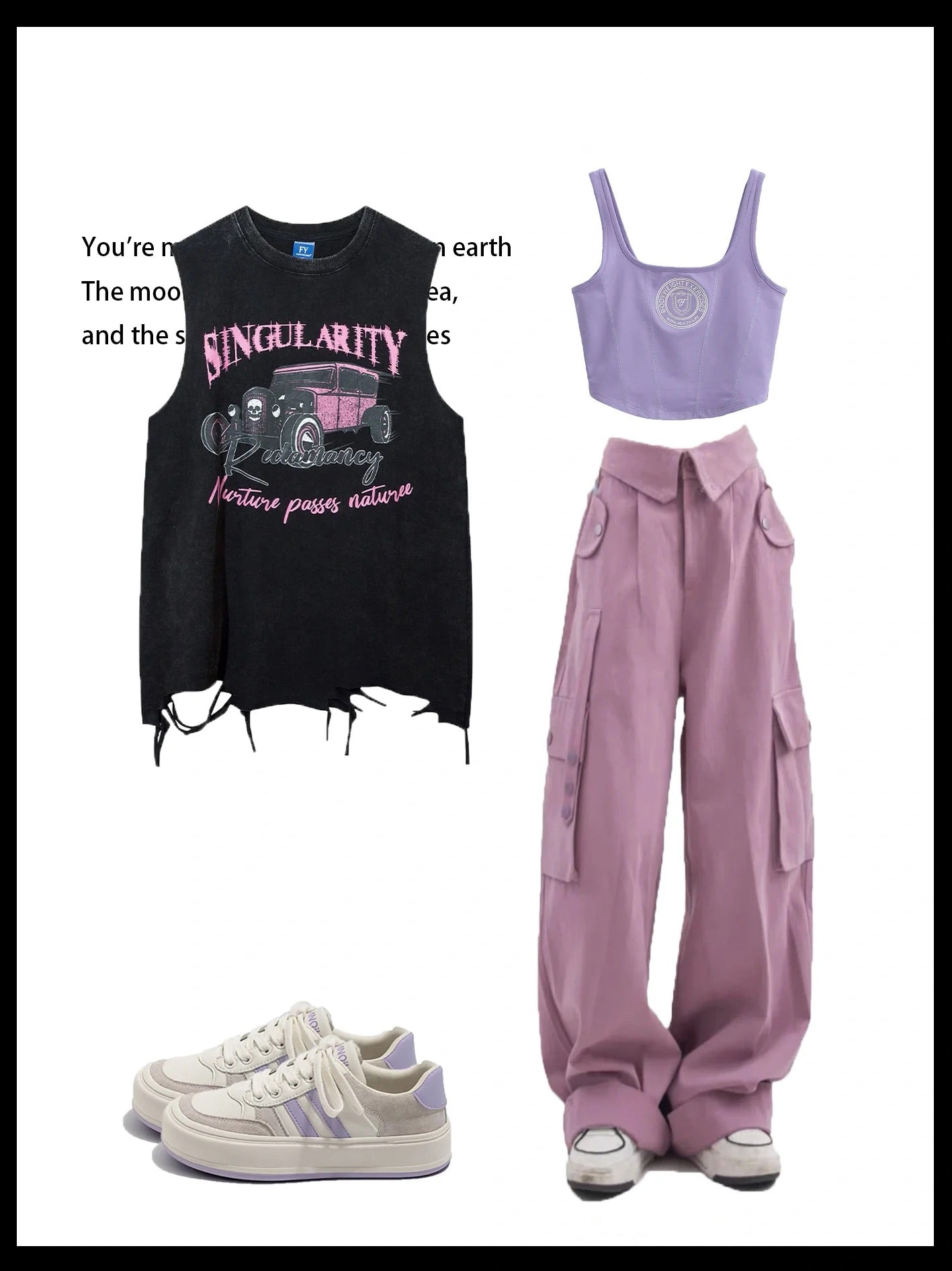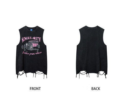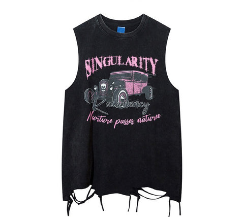 夏アメリカ風復古ストリート風カップル袖なしTシャツ/夏アメリカ風ビンテージ多ポケットスキッパーカーゴゆったりカジュアルパンツ番号ZT119