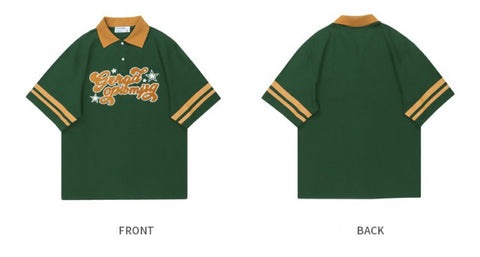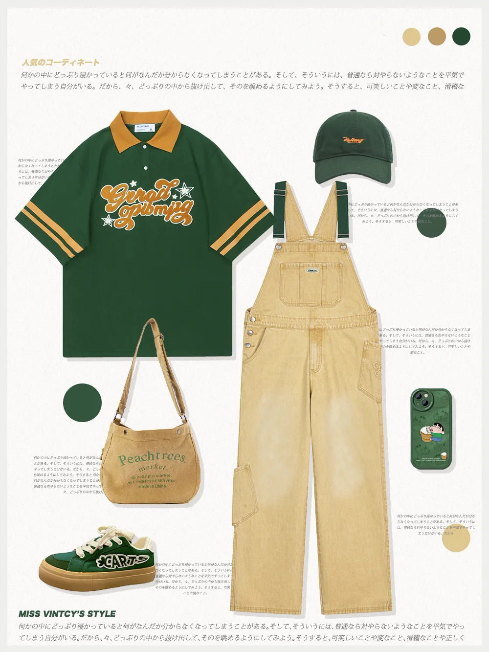 夏アルファベット混合色ポロシャツ男女復古ゆったりカップルコーディネート自在上着 ヴィンテージシンプルサスペンダージーンズ女2023夏新作ハイウエストコーディネート自在 ストレートパンツ番号ZT9