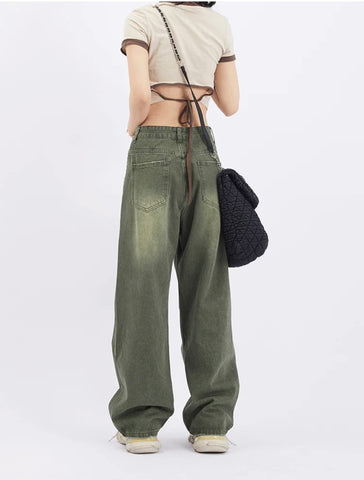 夏カップルゆったりスポーツTシャツ上着/2023夏ストラップ/夏アメリカ風ビンテージ風ワイドジーンズ番号ZT103