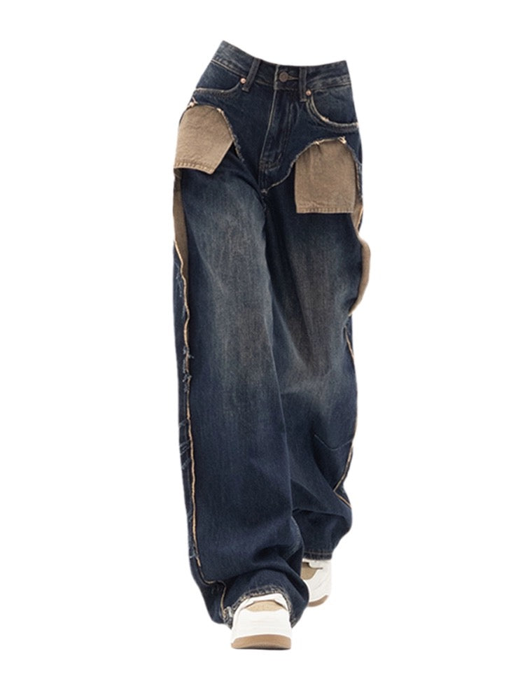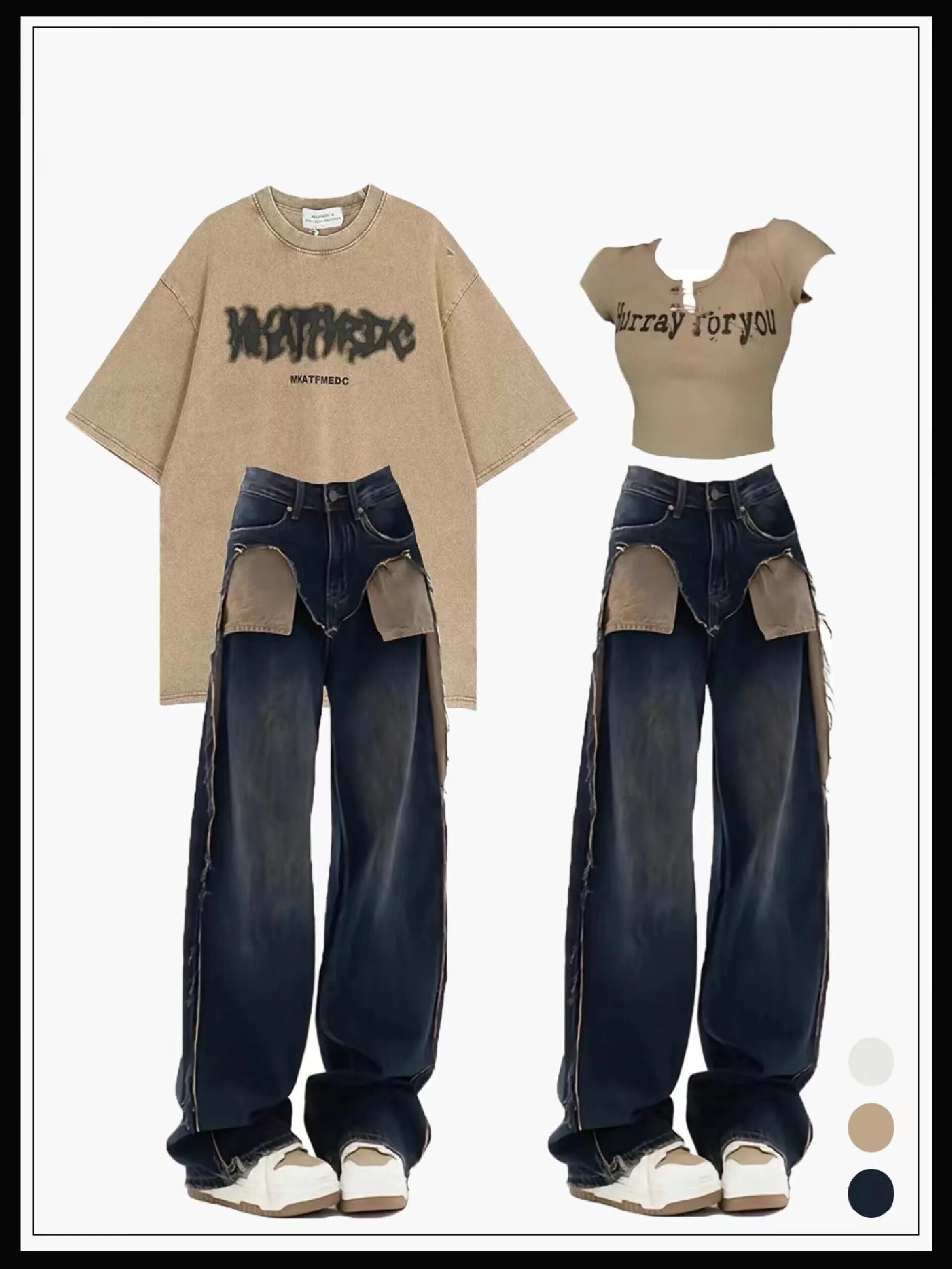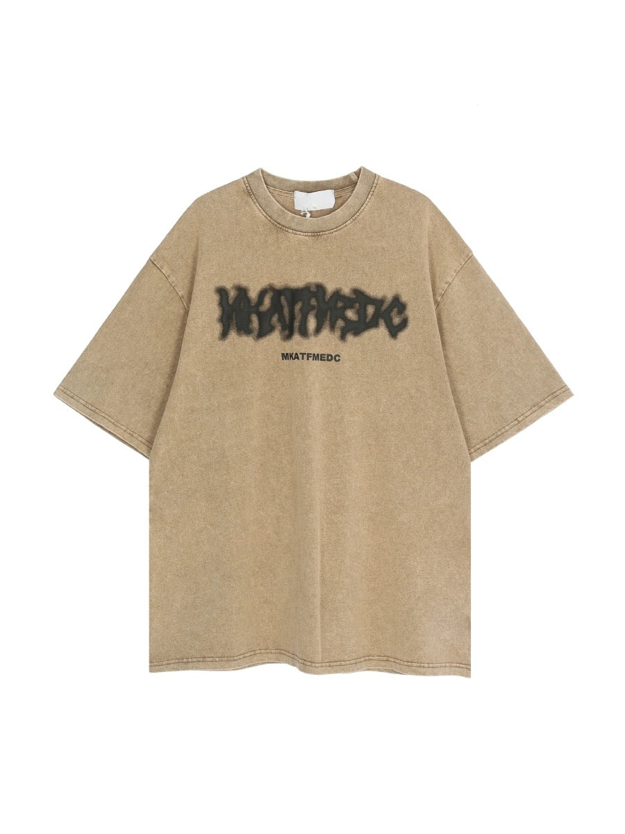 夏ハイストリートグラフィティプリントゆったりペア半袖Tシャツ/アメリカ風ギャルデザイン感覚ボタン針ショートタイプ上着スリムハイストリート/ビンテージウォッシュ加工ダークブルージーンズ女夏サイズスリッパワイドパンツ番号ZT273