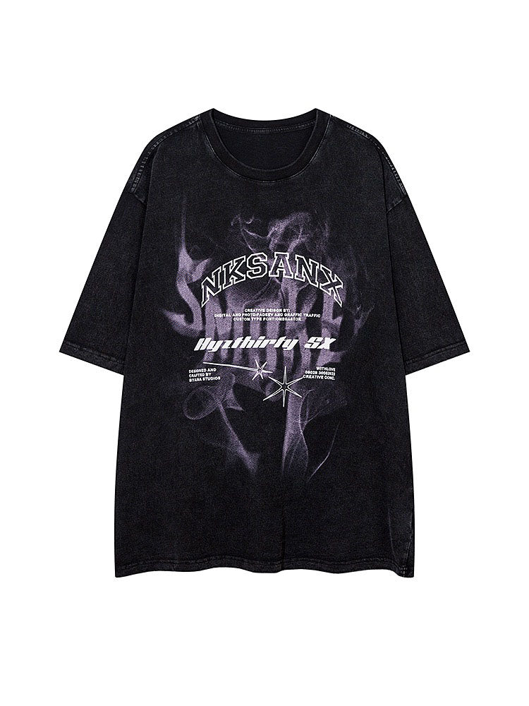 夏ヒップホップハイストリートoversize半袖Tシャツ/夏ギャル黒連ニッチデザイン半袖上着番号ZT187