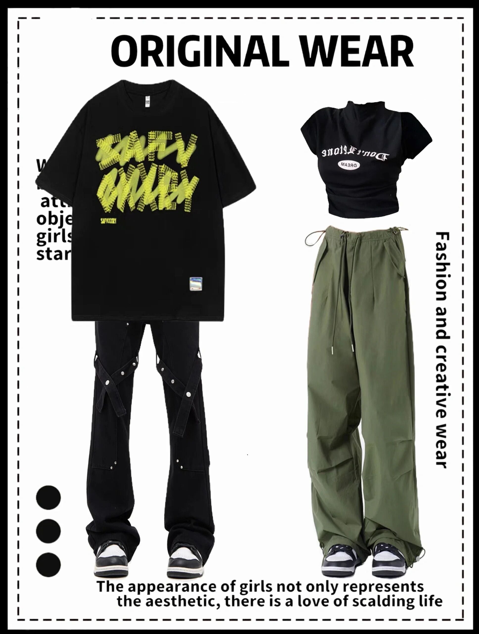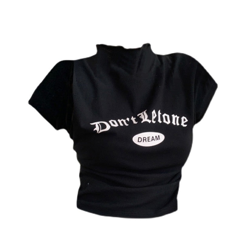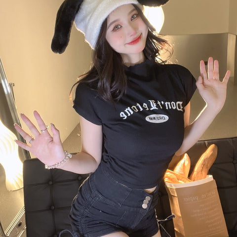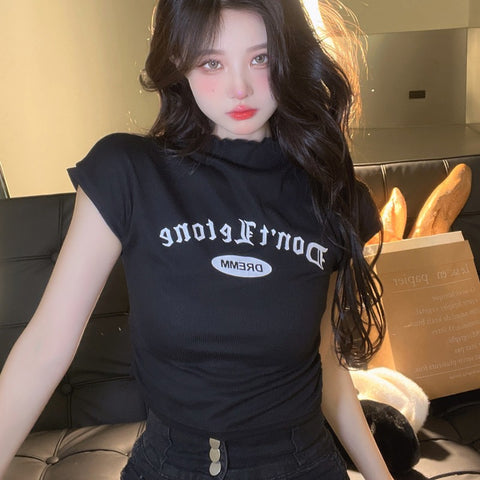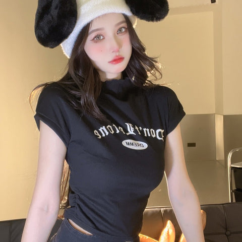 夏ブラックハイネック甘辛ギャル半袖Tシャツ/夏流行アメリカンヴィンテージ風カジュアルカーゴパンツ番号ZT140