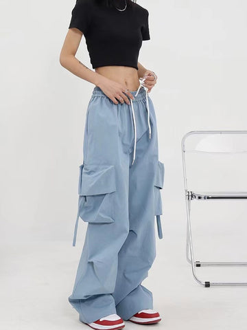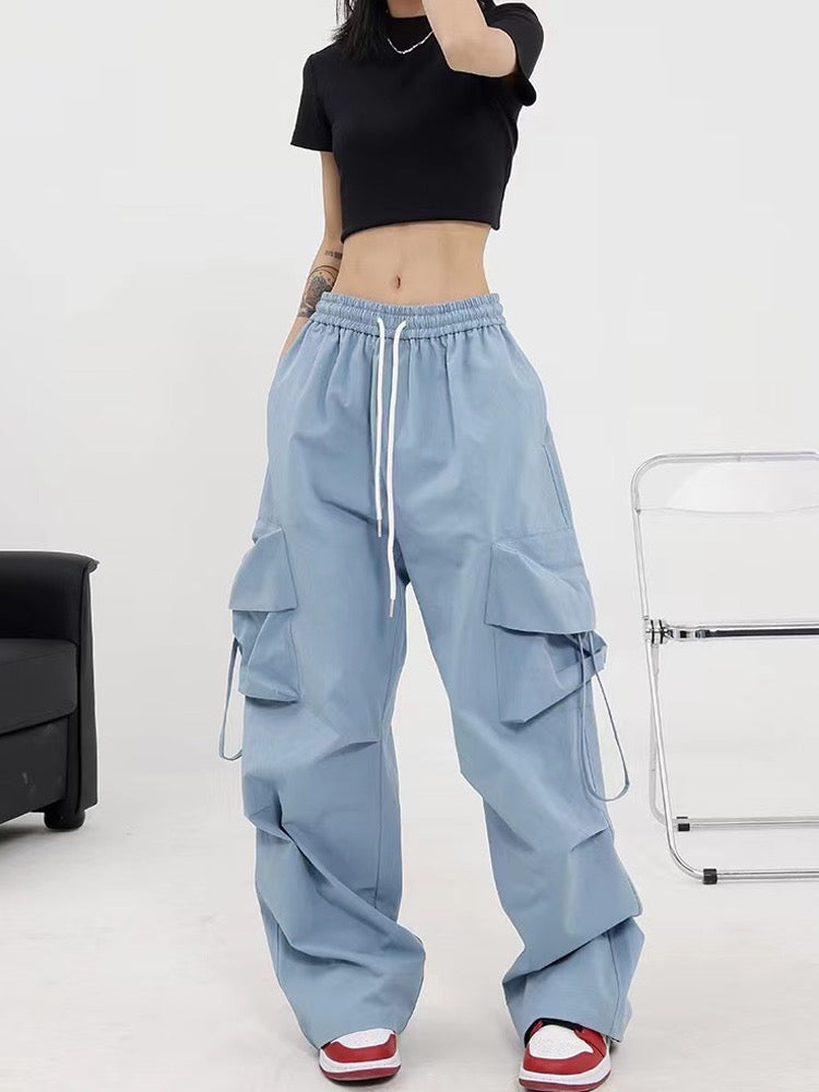夏新作アメリカ式ストリートカップルタイプスイートでクールな個性的な趣味漫画半袖Tシャツ/夏2023新作甘辛妹アメリカンカーゴパンツ大ポケットストレートカジュアルゆったりワイドレッグスリムパンツ番号ZT56