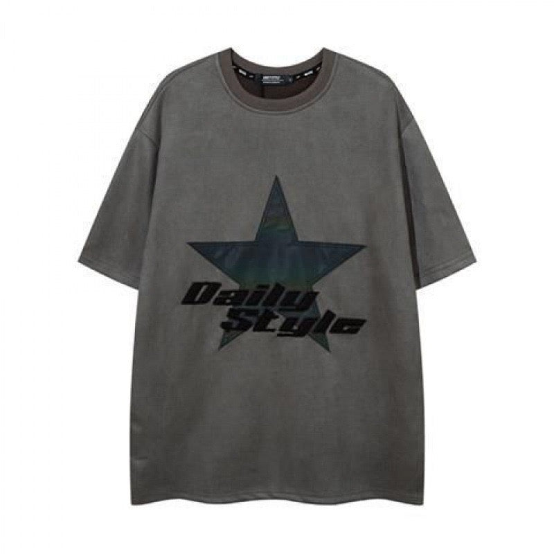 夏欧米ヒップホップゆったりストリートスターアルファベット半袖Tシャツ/黒ゆったりストレートデニムパンツ番号ZT84