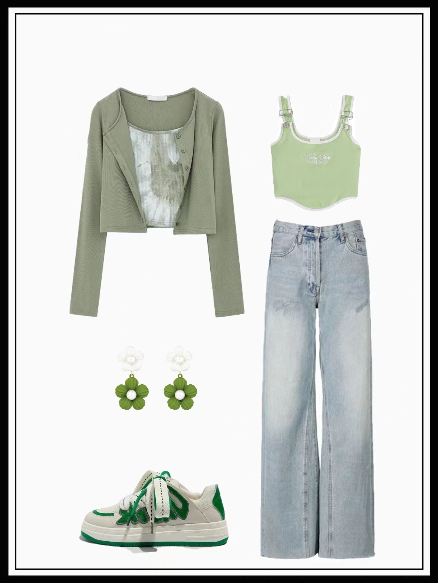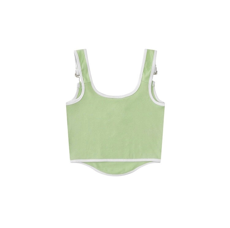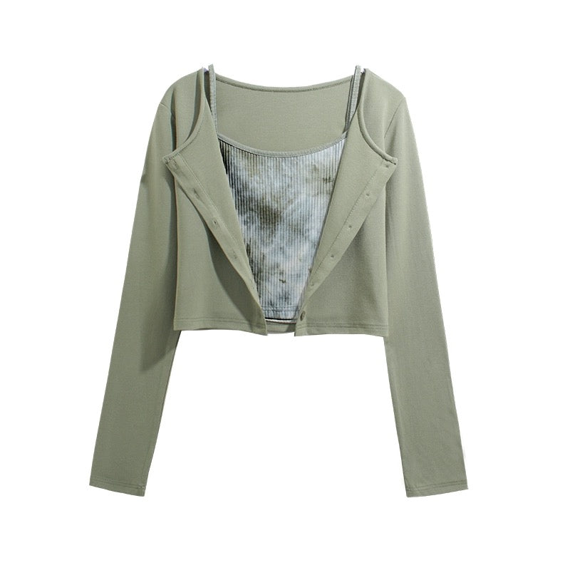 夏秋bm風純欲ギャルショートタイプキャミソール長袖プリント上着2点セット女性/ミルクグリーンコーディネート自在上着キャミソール女性ハイウエストbm風U型裾ギャルショート上着タンクトップ番号ZT484