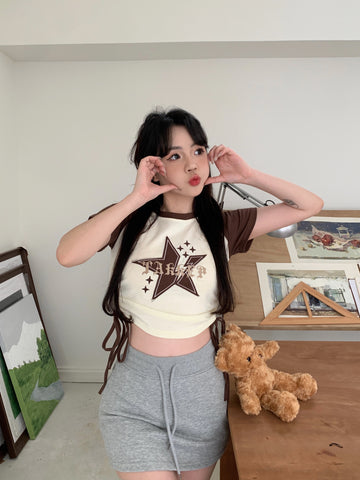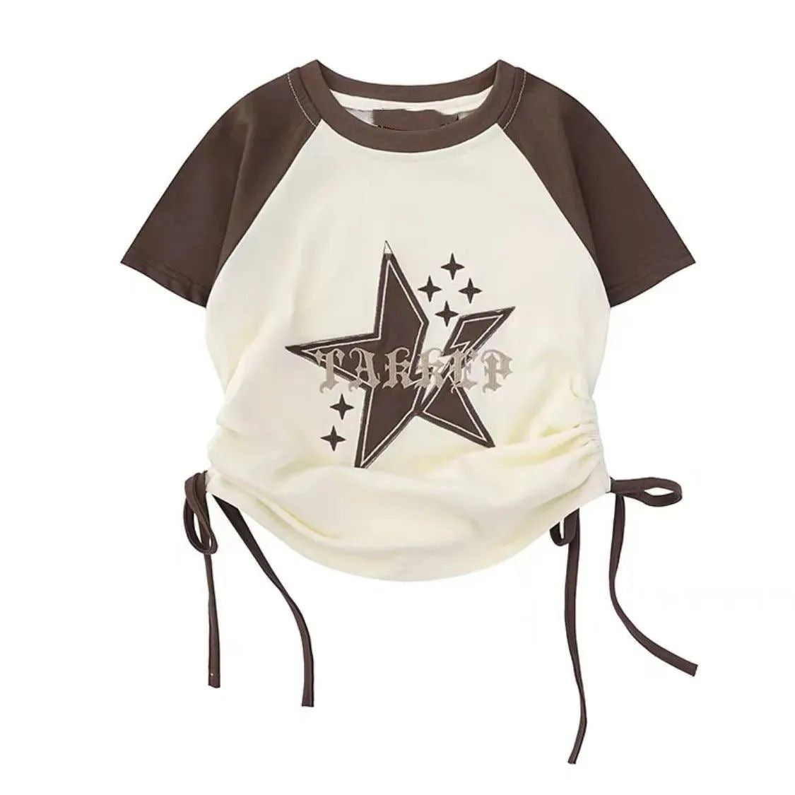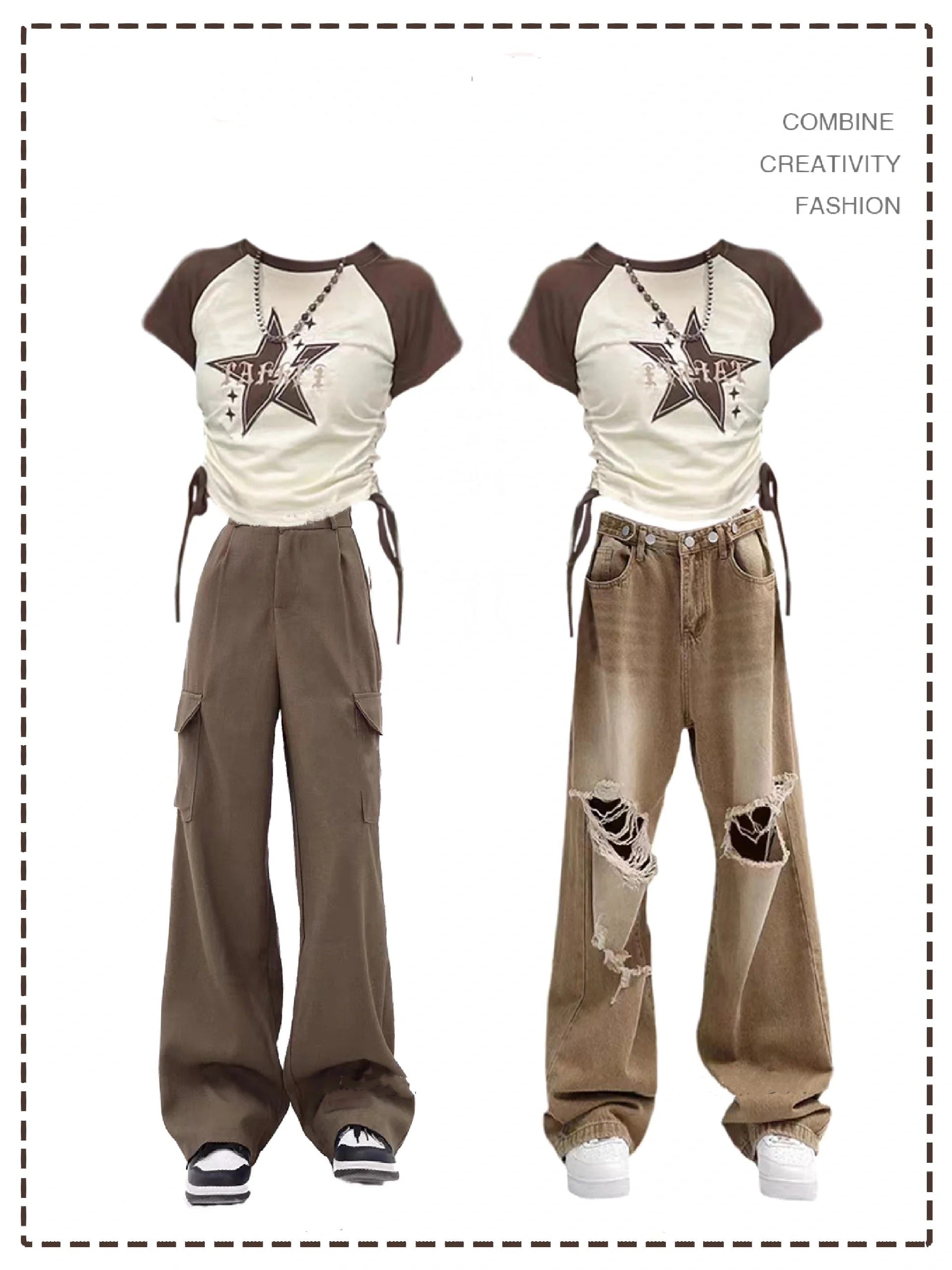 夏米式大サイズギャル風ショートタイプTシャツ/夏ビンテージワイドレッグジーンズ番号ZT125