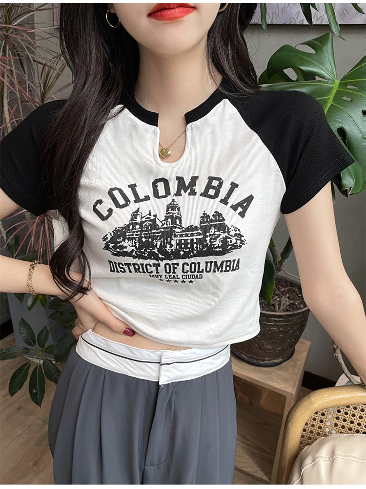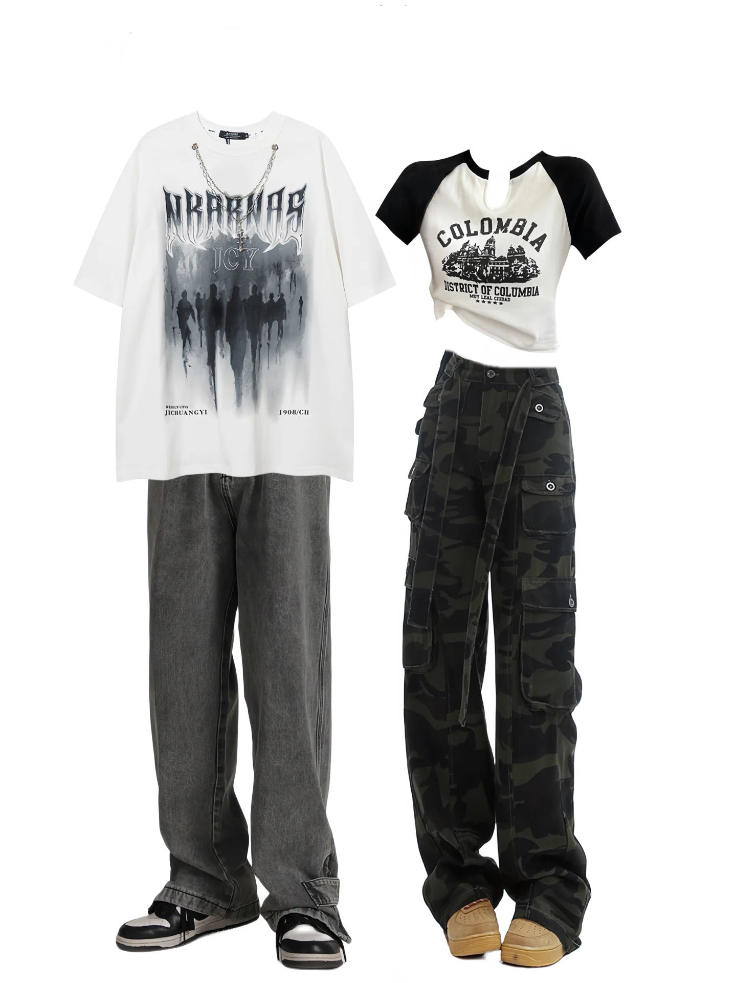 夏米風ビンテージのショートタイプTシャツ/夏アーミーグリーンアメリカンカーゴパンツ/夏アメリカ風ストリート風カップル半袖上着番号ZT110