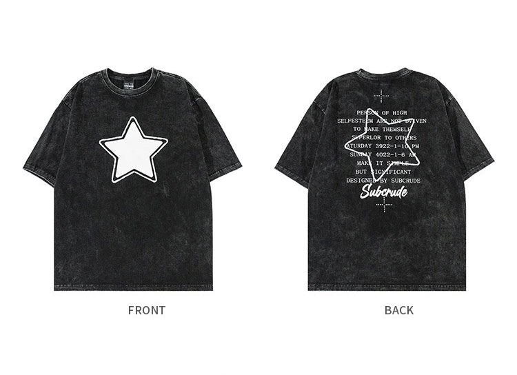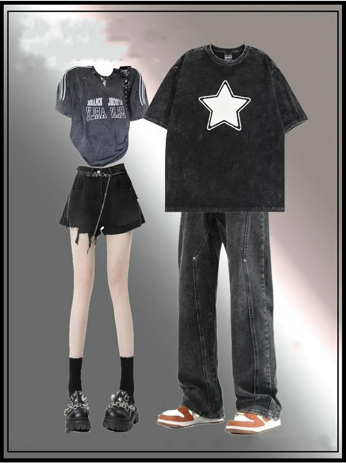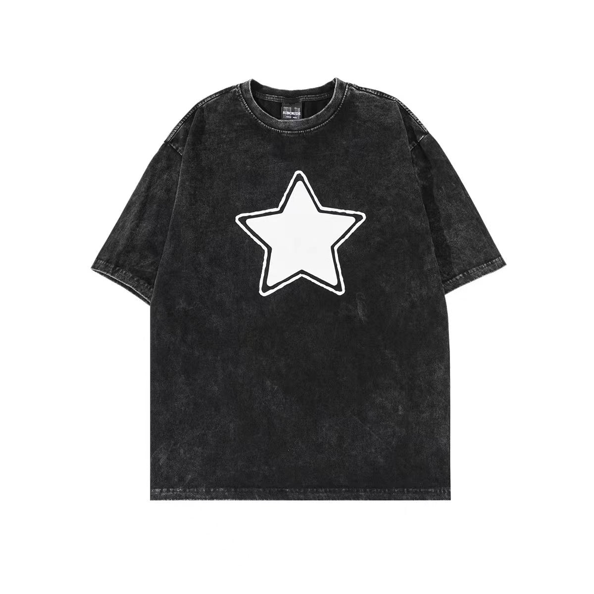 夏米風ビンテージ風五角星プリントカップル半袖Tシャツ番号ZT197