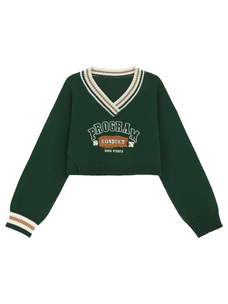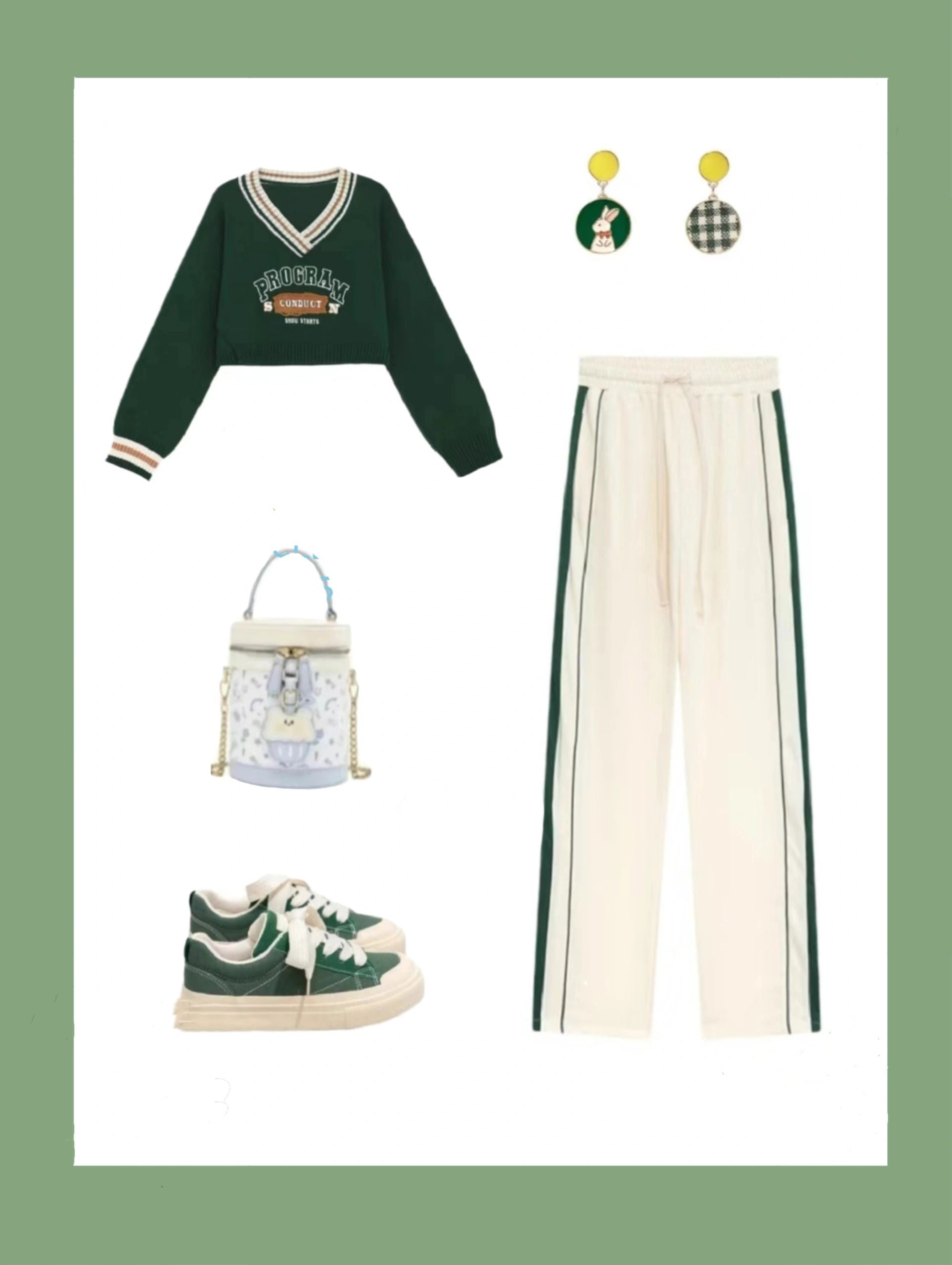 学院風クラシックグリーンショートタイプ上着Vネックセーター/美街hiphopパンツins潮欧米高街無地ワイドパンツ番号ZT505