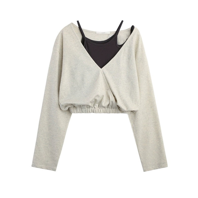 小衆フェイクレイヤードパーカー女性insトレンド韓国風ゆったりショートタイプ香港風薄型上着番号ZT483