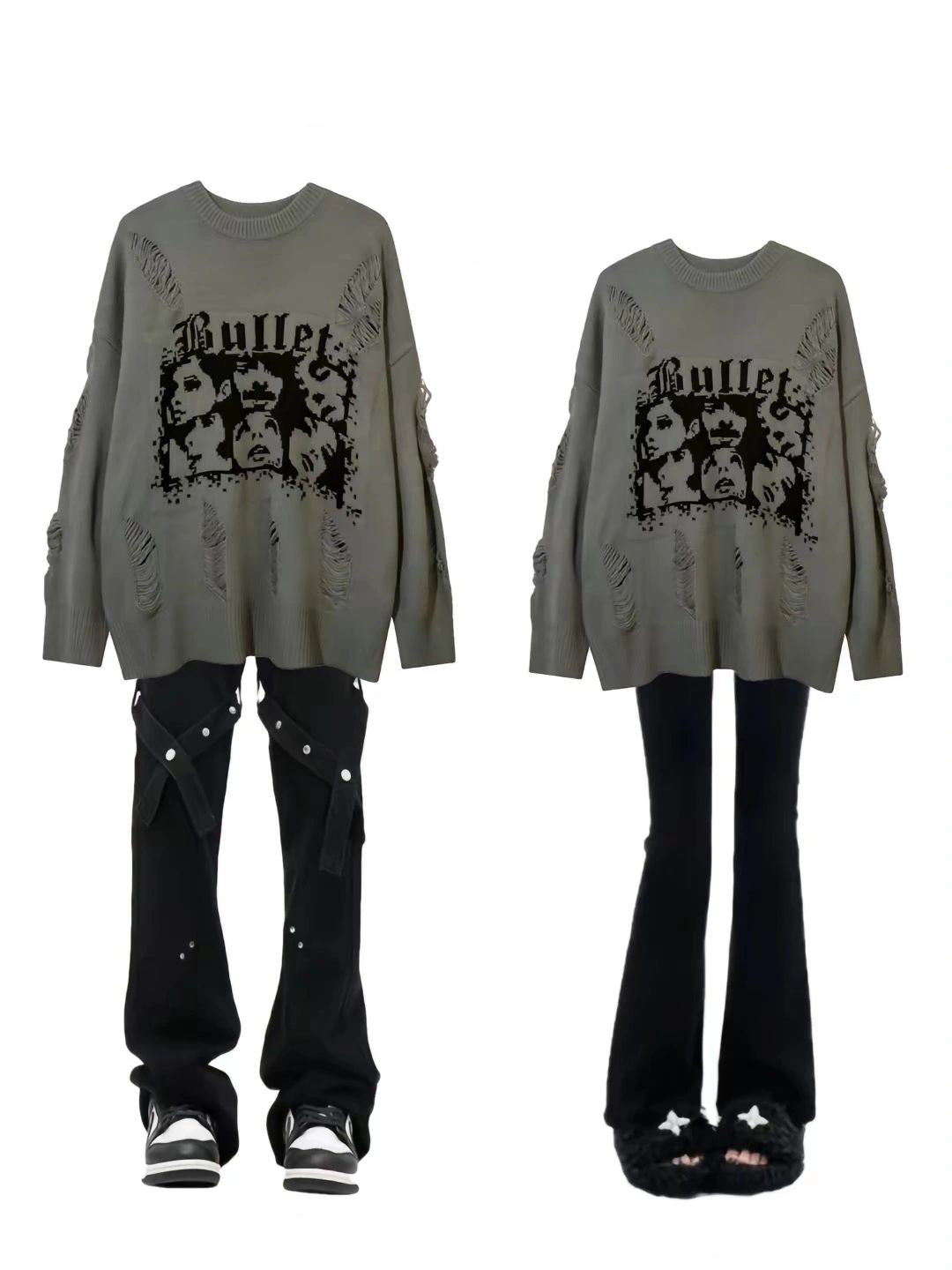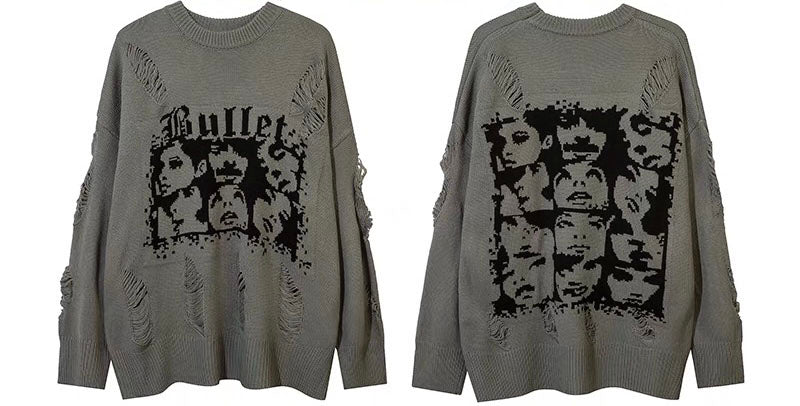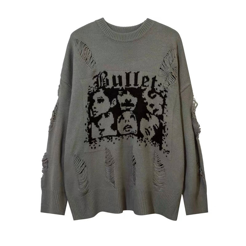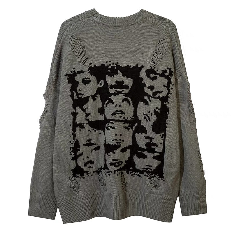 欧米ハイストリートアンティーク風ジャカードフレンチ独特のデザインvintage穴あきニット番号ZT567